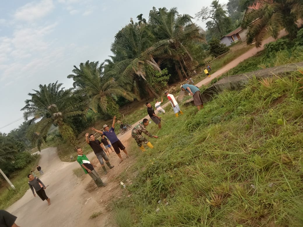 Babinsa Koramil 04/Muara Lakitan Serda Joni hariyanto, tampak semangat melaksanakan gotong royong bersama warga masyarakat membersihkan semak belukar di sepanjang jalan di Desa Prabumulih 1,Kecamatan Muara Lakitan, Kabupaten Musi Rawas, Jum’at (26/07/2024).