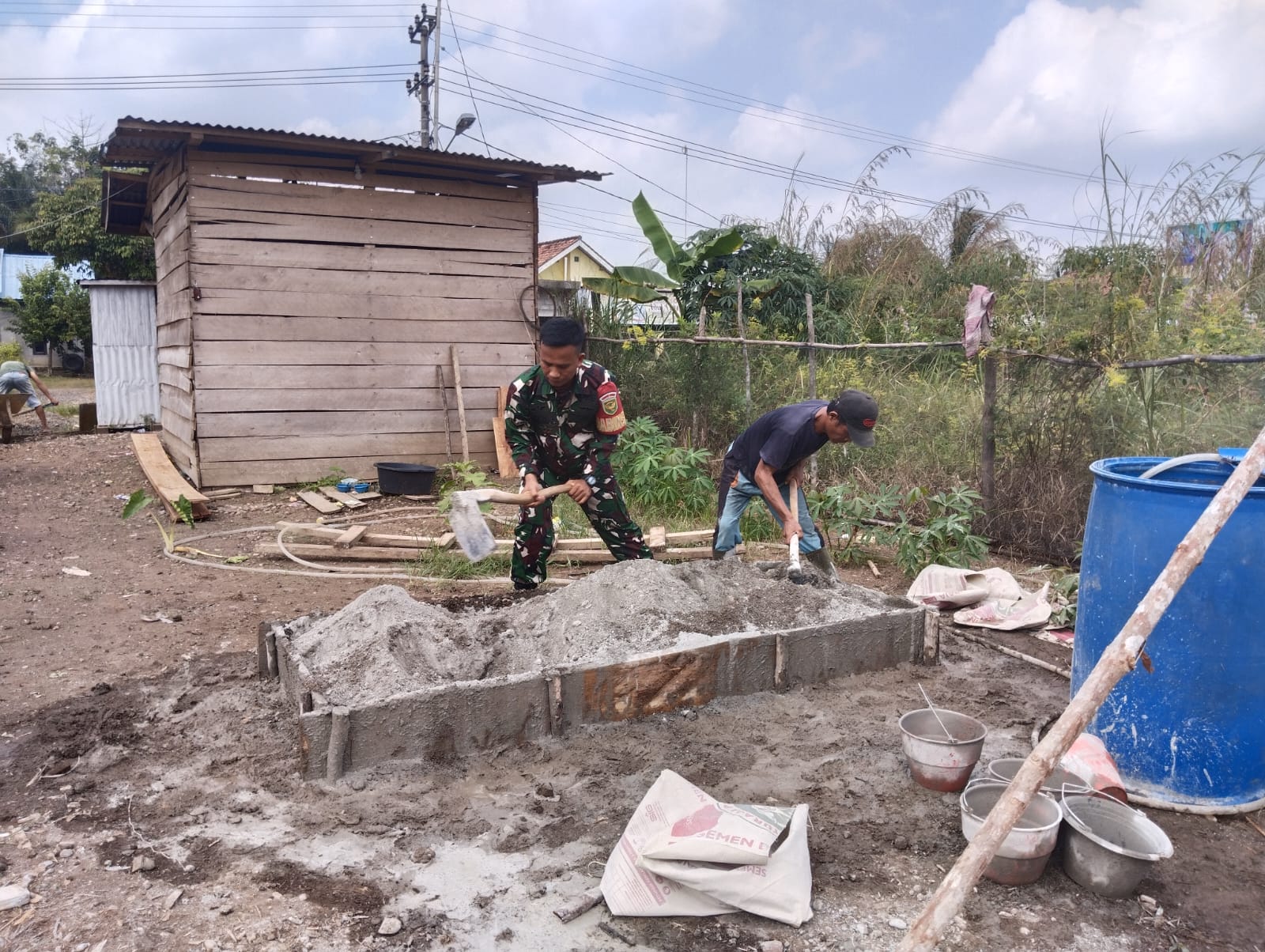 Wujud Pengamalan Delapan Wajib TNI, Serda Arian Arizal Bantu Proses Pembangunan Rumah Warga