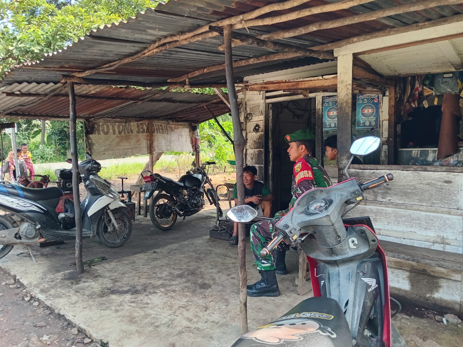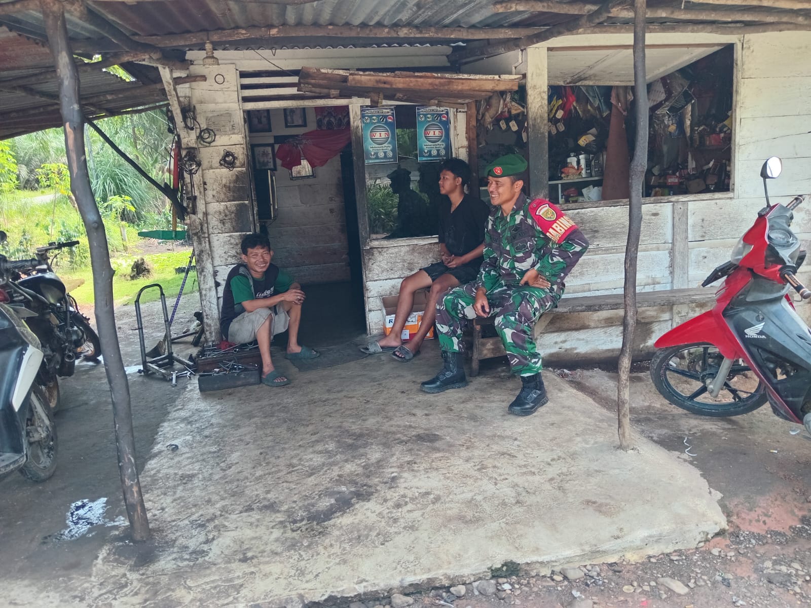 Tugas Rutin Babinsa. Serda Syukra Dede Babinsa Koramil 406-09/Terawas Melaksanakan Komsos Di Wilayah Binaan.