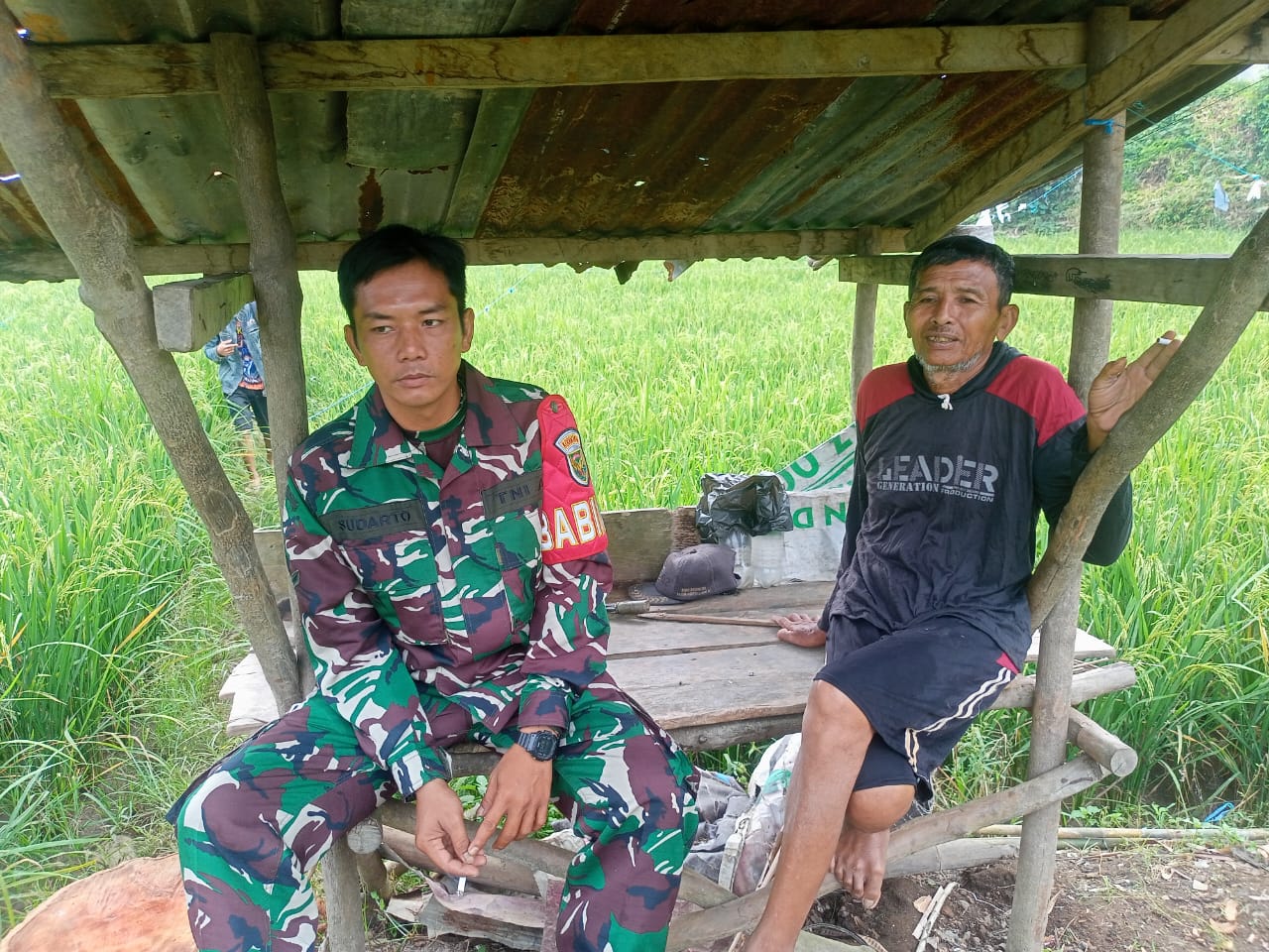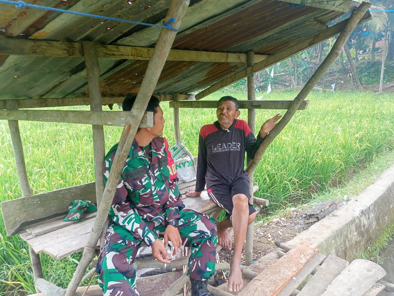 Dalam menjalin komunikasi sosial antara aparat komando kewilayahan dengan masyarakat bisa dilakukan di mana saja. Seperti yang dilakukan Serda Sudarto dengan melakukan komsos bersama petani yang siap turun Kesawan.