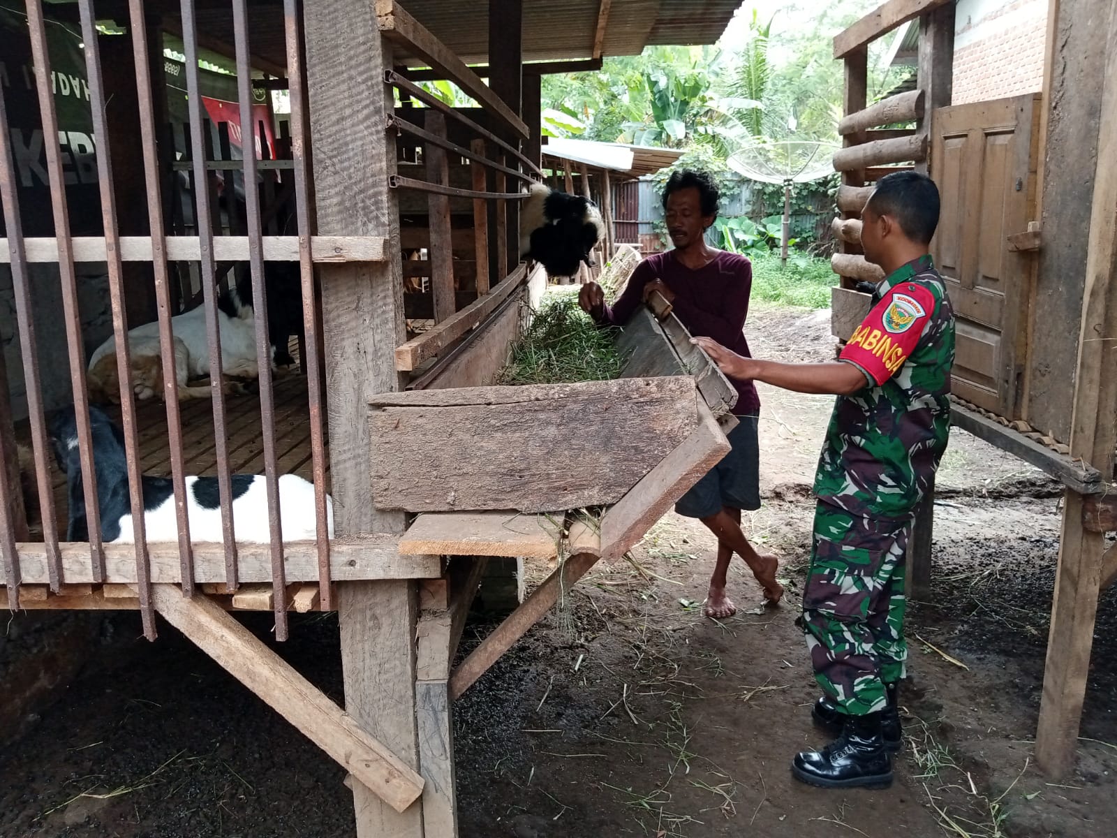 Babinsa Koramil 07/Jayaloka Kodim 0406/Lubuklinggau Serka mizan menyempatkan waktu membatu pendampingan salah seorang peternak kambing, Di Desa ngestiboga 2,Kecamatan jayaloka, Kabupaten Musi Rawas, Sabtu (10/08/2024).