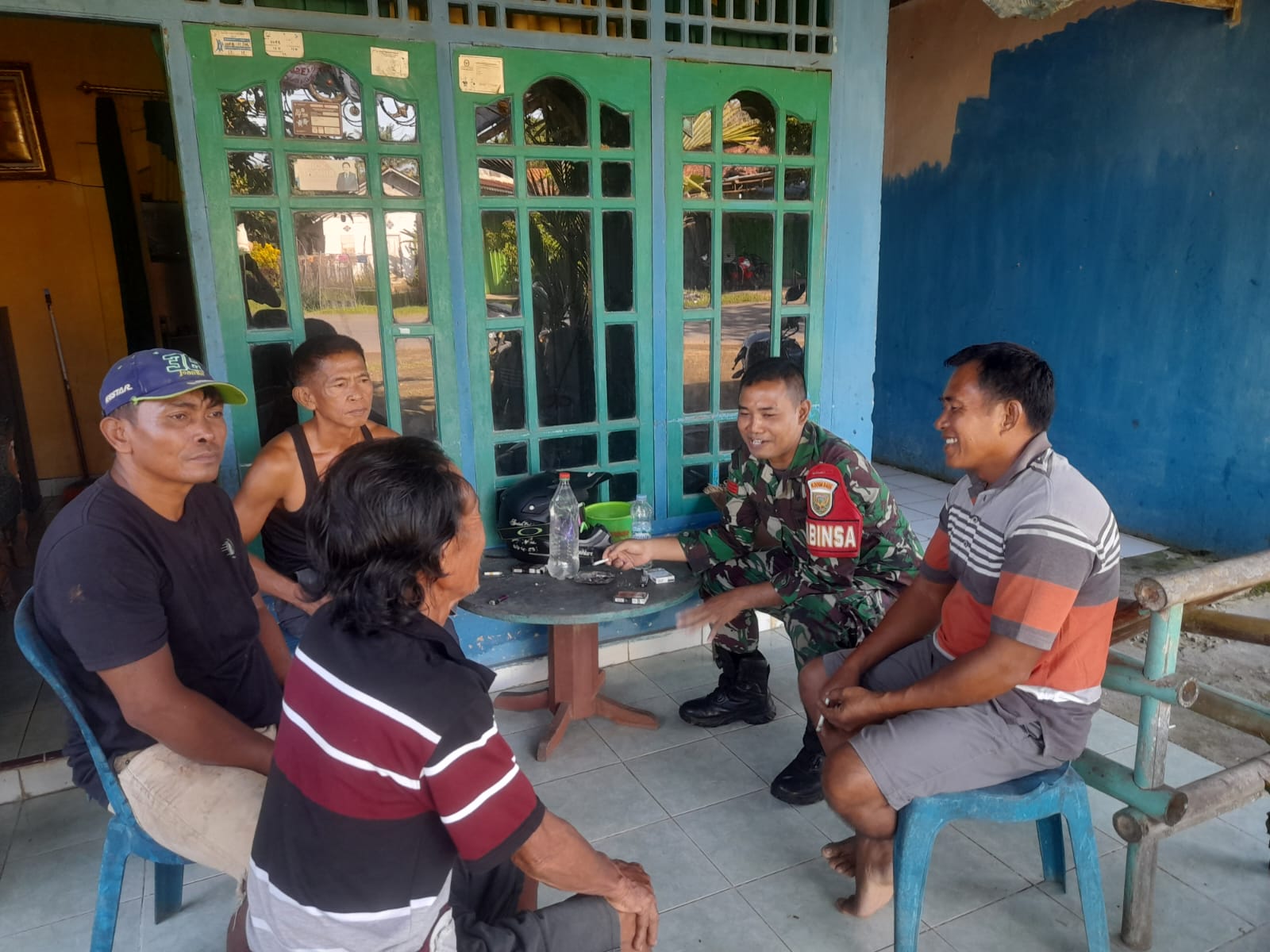 Babinsa Koramil 406-09/Terawas Melaksanakan Komsos Bersama Warga Di Desa Jambu Rejo, Kecamatan Sumber Harta, Kabupaten Musi Rawas
