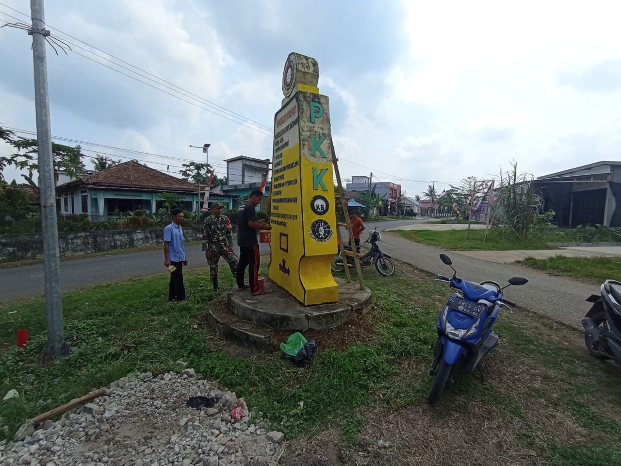 Serda nusdar menyampaikan , Dalam rangka memeriahkan Hari Ulang Tahun Republik Indonesia (HUT RI) ke -79 Babinsa bersama masyarakat melaksanakan Gotong Royong melakukan pengecetan tugu pertigaan dalam rangka memeriahkan agustusan.