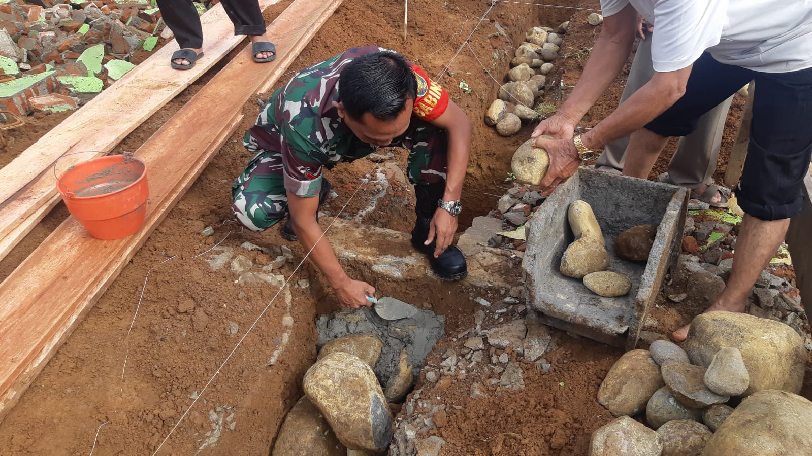“Pada hari ini kita laksanakan peletakan batu pertama pembangunan rumah marbot Masjid dan akan kita bangun sebuah rumah marbot harapannya dapat lebih efektif dalam menjaga dan merawat Masjid “, ungkap Babinsa Koptu Siswanto.