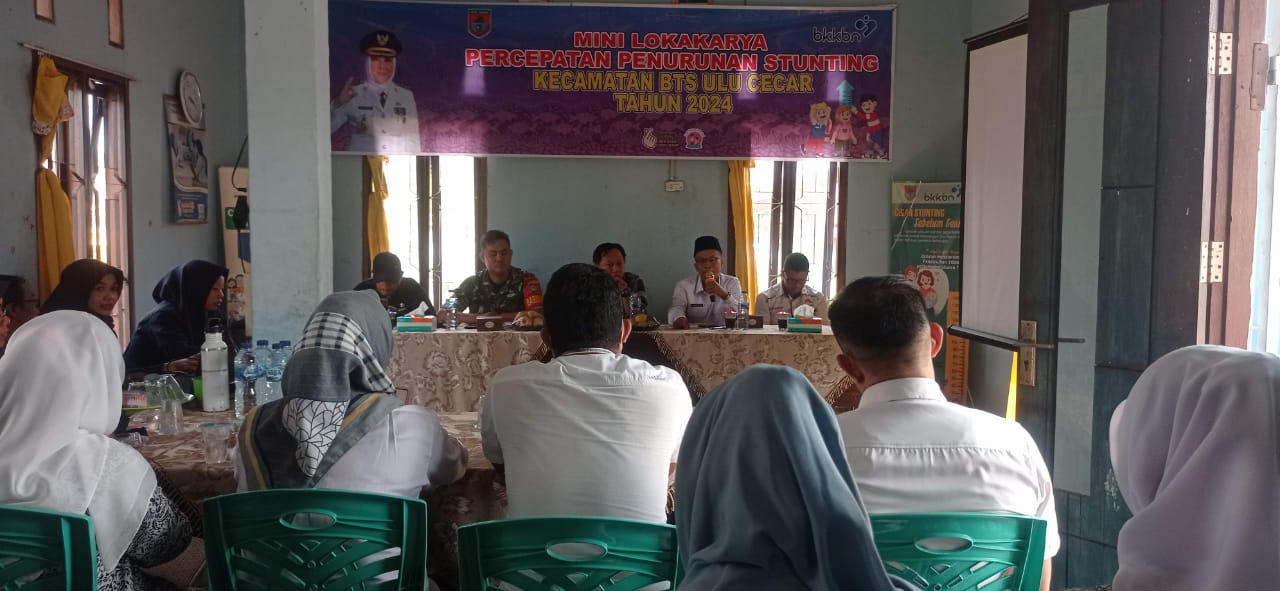 Babinsa Koramil 406-05/ Muara Kelingi Serda Amveeky menjelaskan mini lokakarya percepatan penurunan stunting merupakan kegiatan pertemuan di kecamatan yang diinisiasi dan dipimpin oleh camat dalam rangka mengawal dan mengevaluasi pelaksanaan pendampingan keluarga dan hasil pemantauan pendampingan keluarga di tingkat Kecamatan BTS ULU.