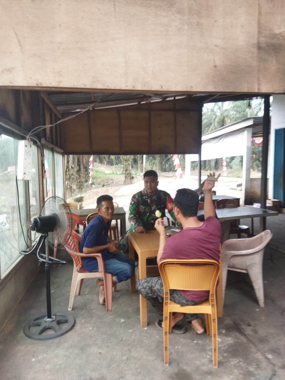 Guna menjalin kemanunggalan TNI dengan Rakyat, Babinsa Koramil 406-02/rawas ilir Sertu Okta Hardiansyah, Melaksanakan Komsos bersama Perangkat desa dan masyarakat desa yang berada di Desa ketapang bening kec rawas ilir, kabupaten Musi rawas utara