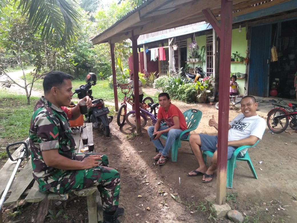 Babinsa Koramil 406-02/rawas ilir Kopda Octa dc, dalam menjalin rasa keakraban serta kebersamaan yang baik dengan warga Babinsa melaksanakan kegiatan rutin komsos di Desa Biaro baru kec rawas ilir, musi rawas utara.