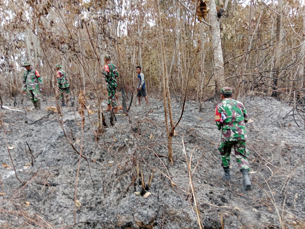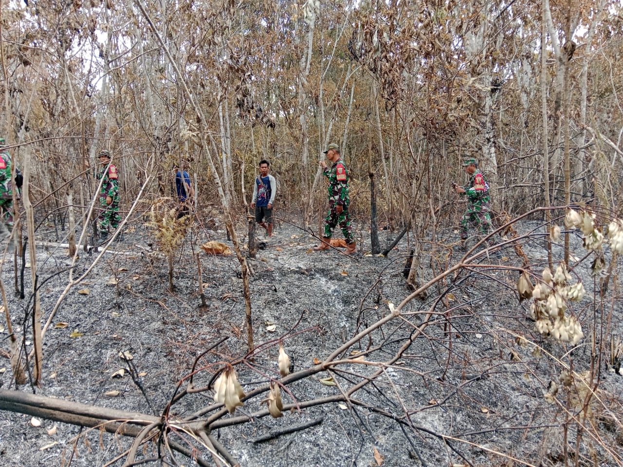 Pastikan Api Benar-benar Padam Babinsa Koramil 406-05/Muara Kelingi Bersama Warga Menyusuri Lahan Yang Terbakar