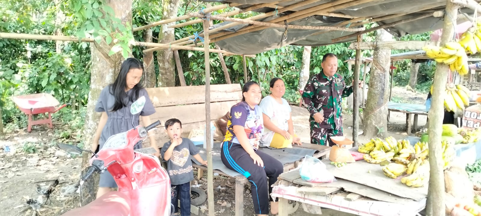 Lensa Garuda- Lubuk Linggau. Babinsa Koramil 406-10/LT Kodim 0406 Lubuk Linggau Sertu Martan menjalin komunikasi sosial bersama pedagang buah dan sayuran hasil kebun . Bertempat di pinggir jalan raya di Rt 05 Kelurahan Air Kuti Kecamatan Lubuk Linggau Timur 1 Kota Lubuk Linggau. Rabu(04/09/2024).