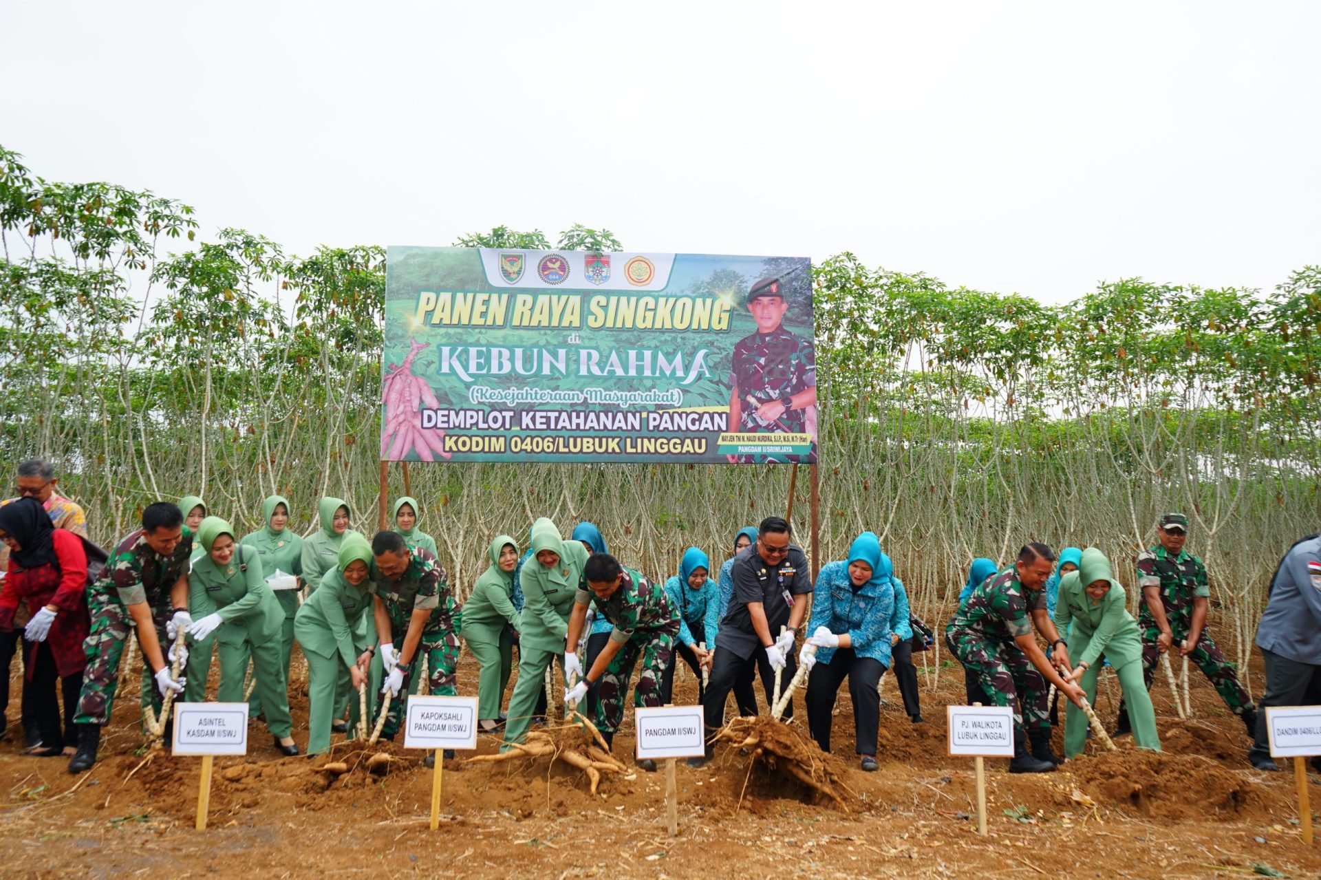 Panen Raya Singkong di Demplot Ketahanan Pangan Kodim 0406 Lubuk Linggau dihadiri langsung Oleh Pangdam II Sriwijaya