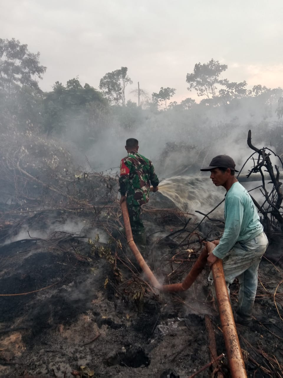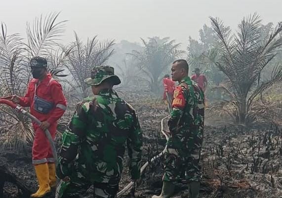 Babinsa Sertu Rudianto mengatakan upaya yang dilakukan tim Koramil terhadap kejadian kebakaran yang melanda lahan masyarakat yakni memadamkan api menggunakan alat mesin pompa bersama warga. Ia juga menjelaskan lahan perkebunan yang berisi tanaman sawit seluas 1 Ha hangus terbakar.