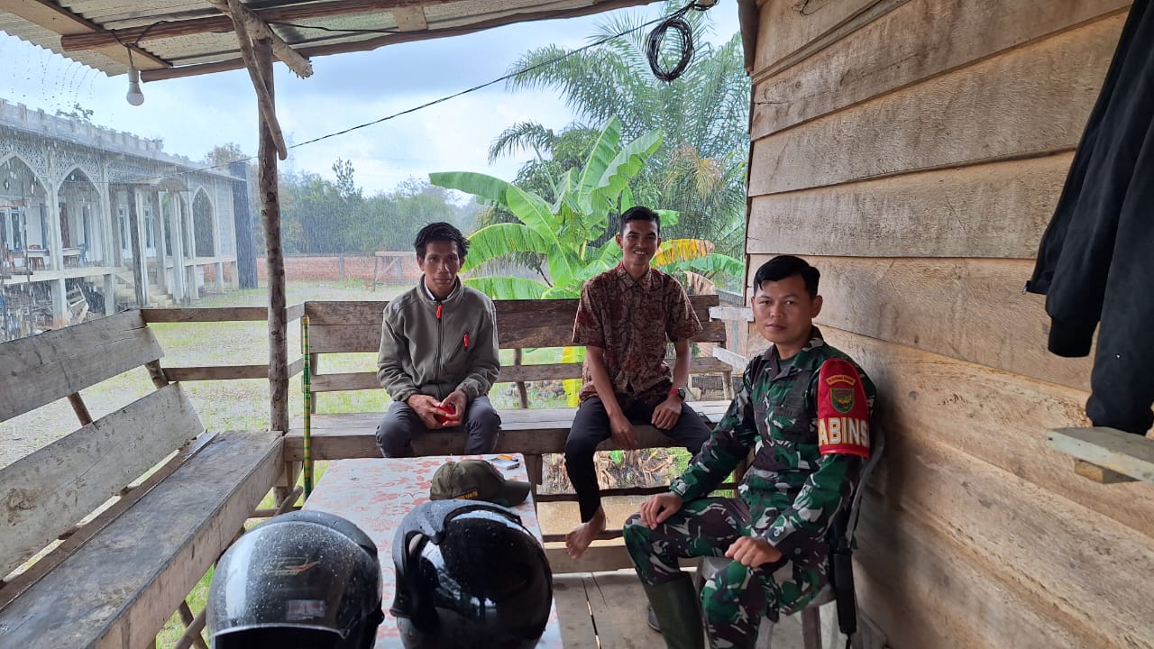 Serda Febriyanto Babinsa Koramil 406-03/Rupit, Kodim 0406 Lubuk Linggau, jalin komunikasi sosial bersama warga dalam rangka antisipasi dan waspada datangnya musim penghujan. Bertempat di Desa Embacang Lama, Kecamatan Rupit, Kabupaten Murata.
