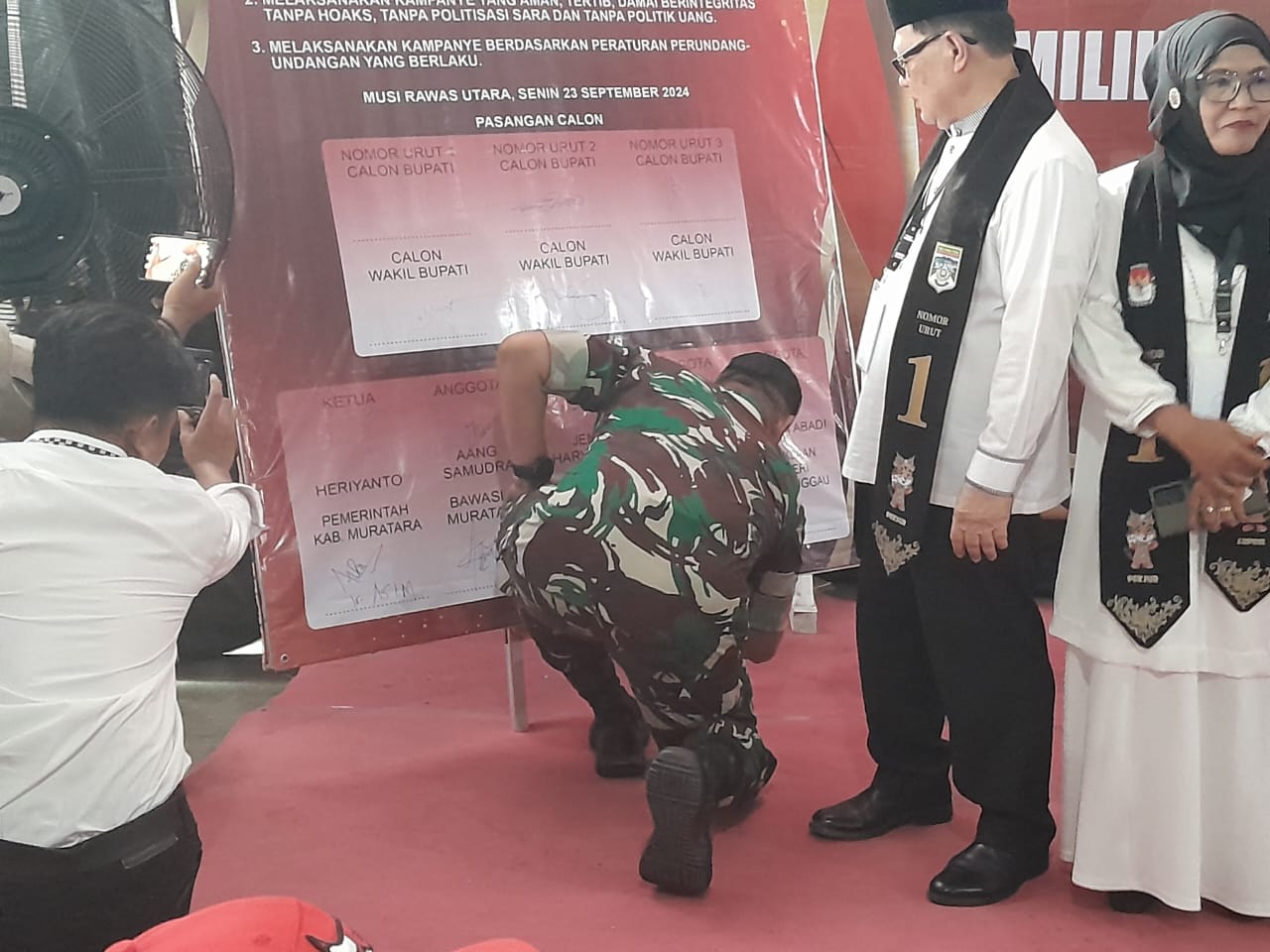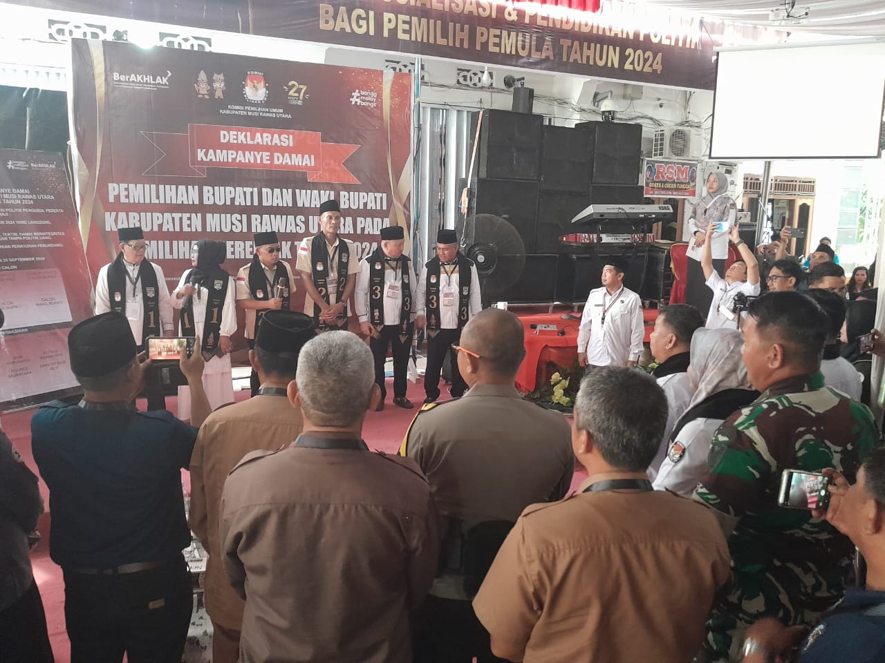 Penetapan nomor urut pasangan calon Bupati dan Wakil Bupati Muratara ini merupakan tahapan terakhir sebelum memasuki masa kampanye Pilkada Muratara 2024. Dan acara tersebut diakhiri dengan penandatanganan deklarasi damai Pilkada tahun 2024 di Kabupaten Musi Rawas Utara.(Pendim 0406/LLG).