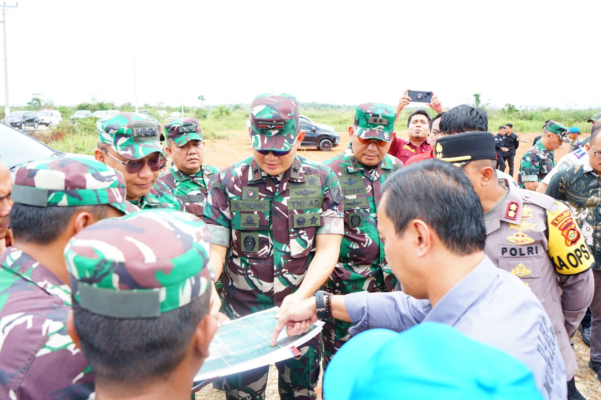 Dalam pelaksanaan peninjauan lokasi lahan hibah turut hadir juga Para Kasi Korem 044/Gapo, PLT Bupati Musi Rawas Utara H Inayatullah, Kepala Dinas Lingkungan Hidup, Kapolres Musi Rawas Utara AKBP Koko Arianto Wardani S.I.K.,M.H, unsur dinas terkait di Pemerintah Kabupaten Musi Rawas Utara.