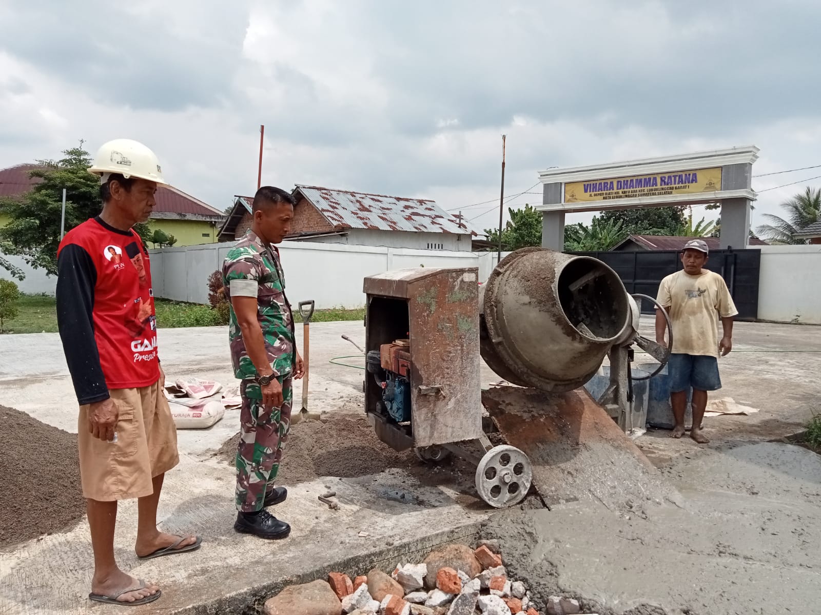Babinsa Koramil 406-08/Lubuklinggau, melaksanakan tugasnya dengan memantau kegiatan warga yang sedang melaksanakan pembuatan tempat parkir di Vihara Dahmma Ratana. Kegiatan ini berlangsung di Jalan Depati Djati, Kelurahan Kayu Ara, Kecamatan Lubuklinggau Barat I