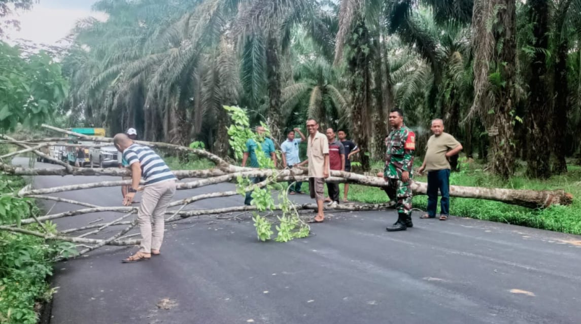 Angin Kencang Tumbangkan Pohon di Jalan, Babinsa Koramil 406-02/Rawas Ilir Bantu Bersihkan Lokasi