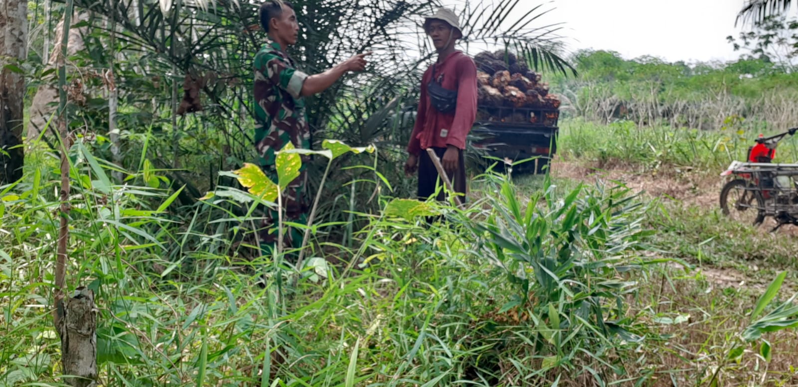 Babinsa Koramil 406-04/Muara Lakitan Serka Bambang Irawan Jalin Komunikasi Sosial dengan Masyarakat Petani Sawit di Desa Binaan