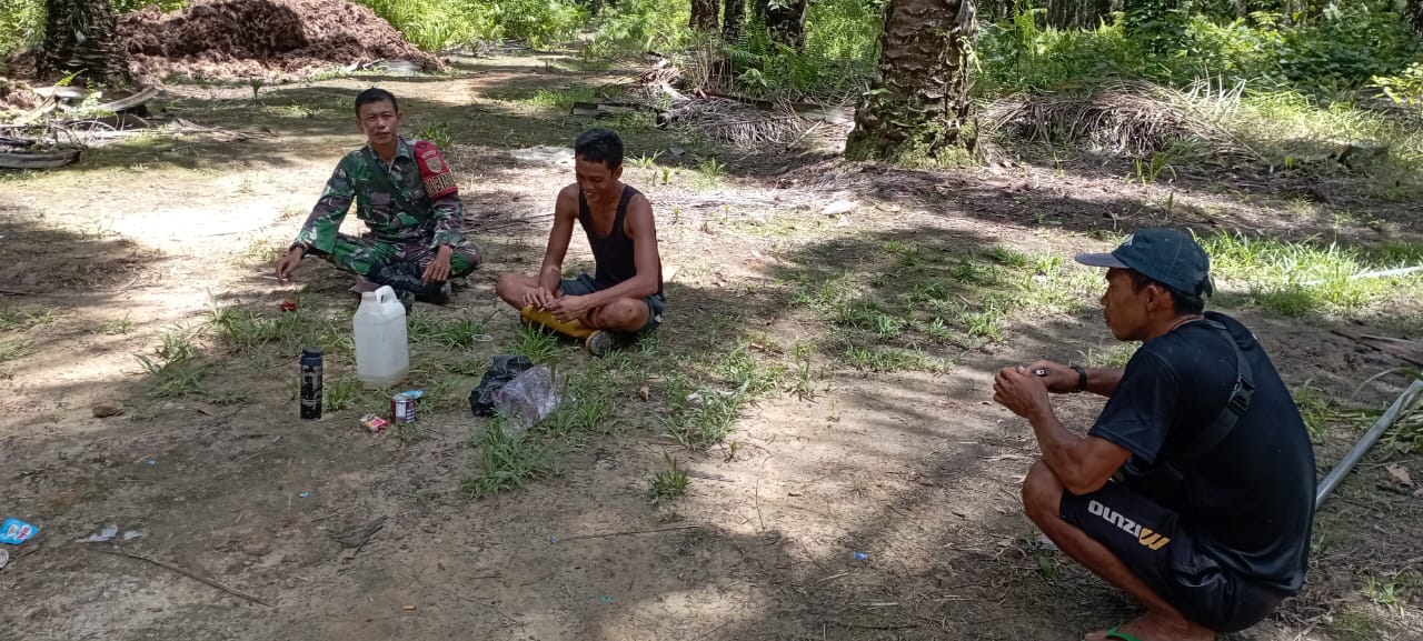 Babinsa Koramil 406-04/Muara Lakitan Serka Yunistan Lakukan Komsos dengan Petani Kelapa Sawit, Sosialisasikan Karhutbunla dan Keamanan Kerja