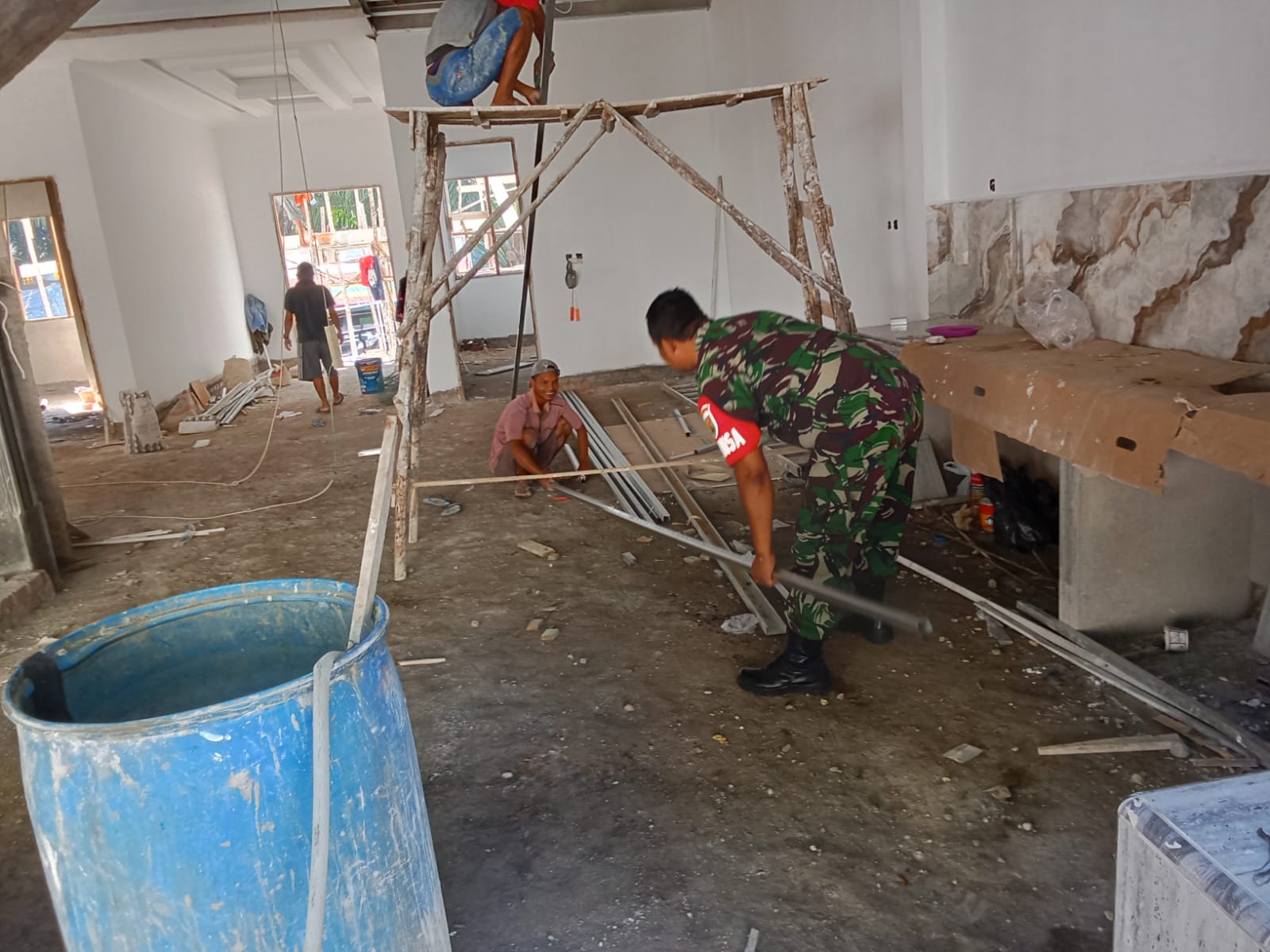 Babinsa Koptu Feri Kurniawan Melaksanakan Komsos Bersama Warga Pekerja Bangunan