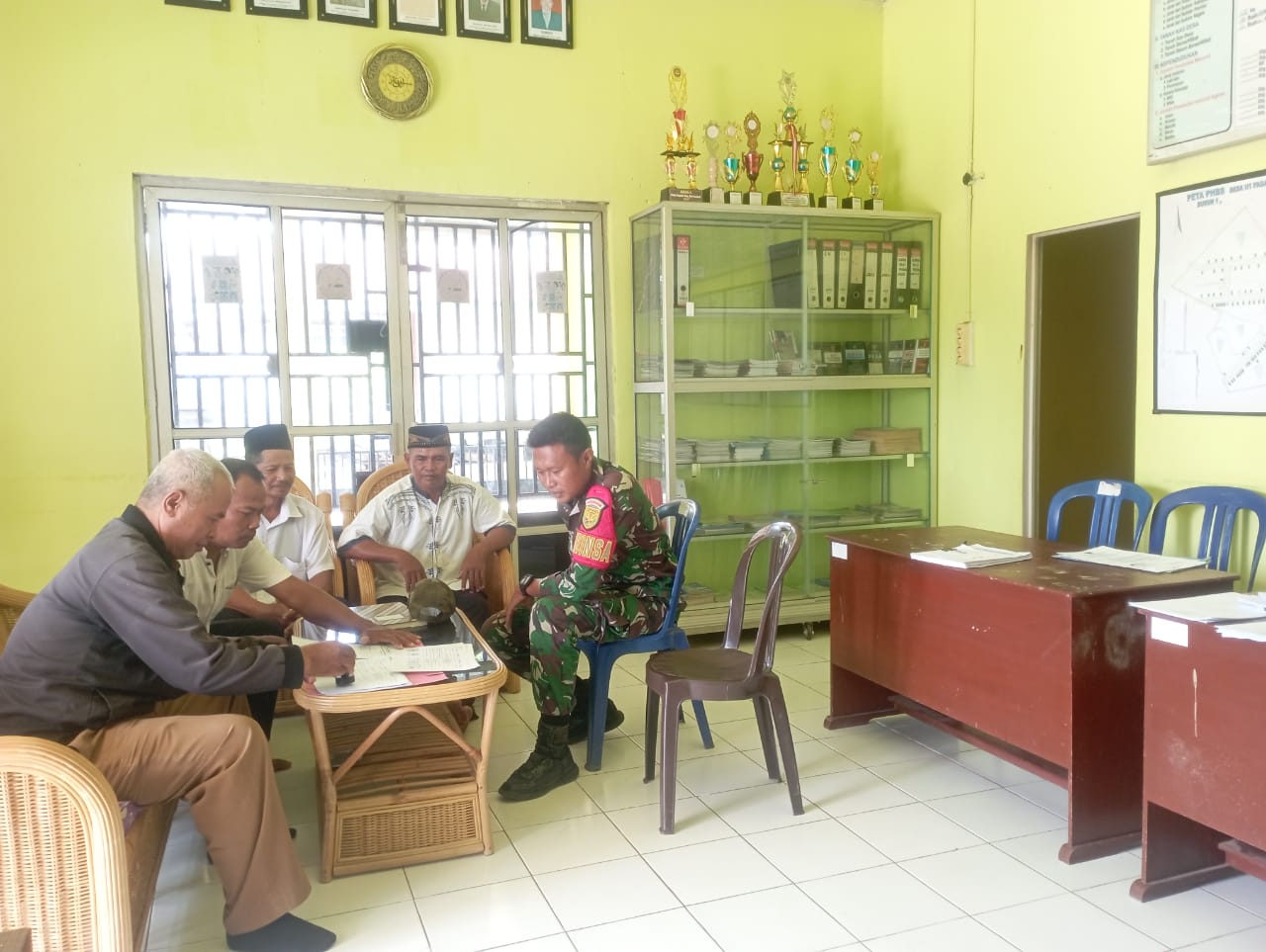 Tugumulyo, 29 Oktober 2024 — Babinsa Koramil 406-06/Tugumulyo, Sertu Nusdar, melaksanakan kegiatan Komunikasi Sosial (Komsos) bersama pendamping desa dan perangkat Desa U1 Pagarsari, Kecamatan Tugumulyo, Kabupaten Musi Rawas. Kegiatan ini berlangsung pada Selasa, 29 Oktober 2024.