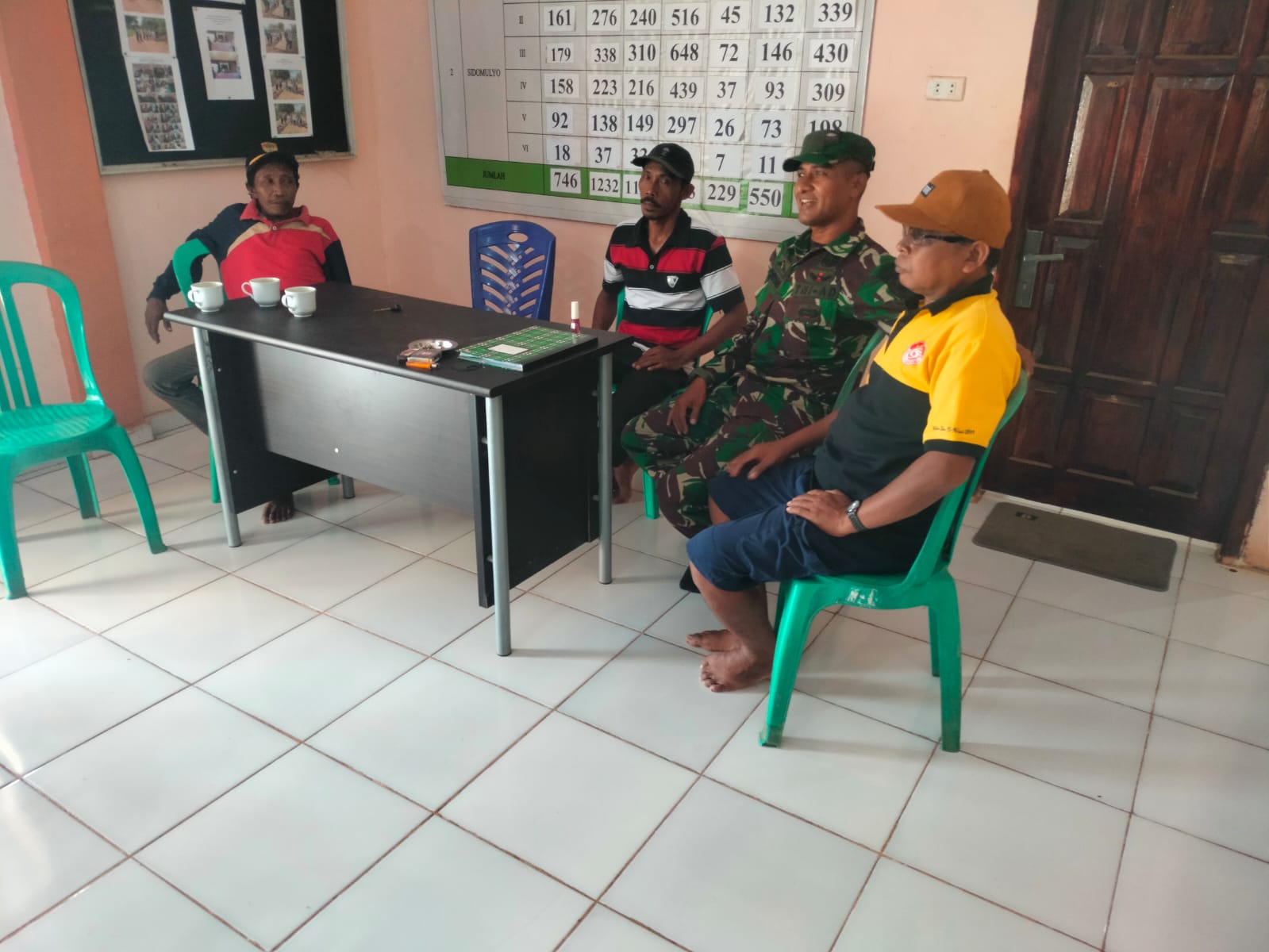 Sertu Dimas Prayoga juga mengajak tokoh masyarakat untuk aktif berperan dalam menjaga keamanan dan ketertiban di desa. Diskusi yang berlangsung hangat dan penuh keakraban ini diharapkan dapat memperkuat hubungan antara TNI dan masyarakat, serta meningkatkan kesadaran akan pentingnya kerjasama dalam pembangunan desa.