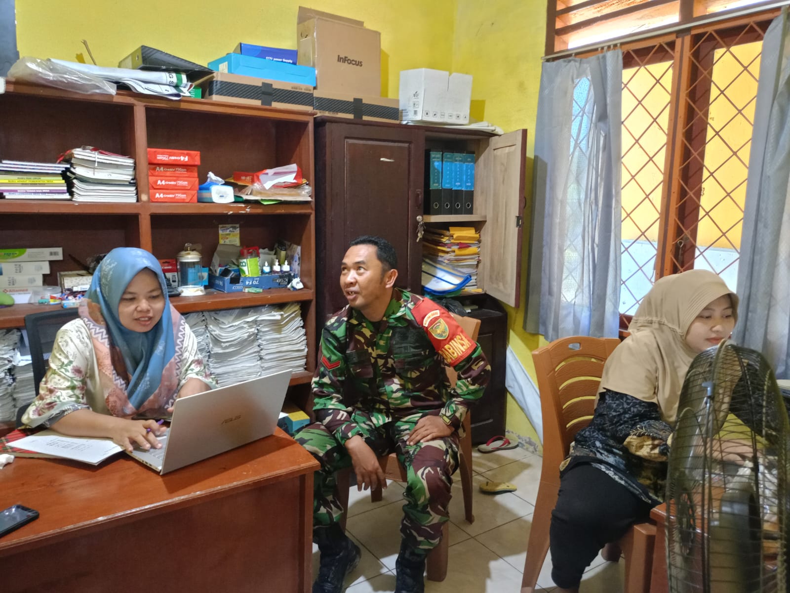 Babinsa Koramil 406-04 / Muara Lakitan Koptu Jumairi Jalin Silaturahmi di Kantor Desa Megang Sakti 4