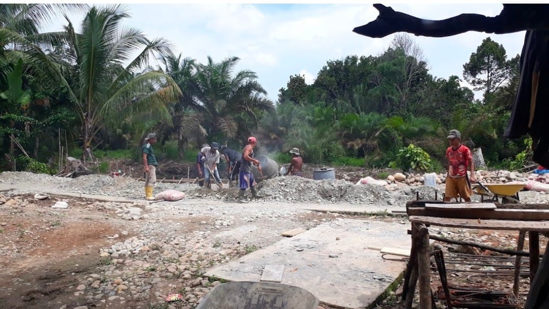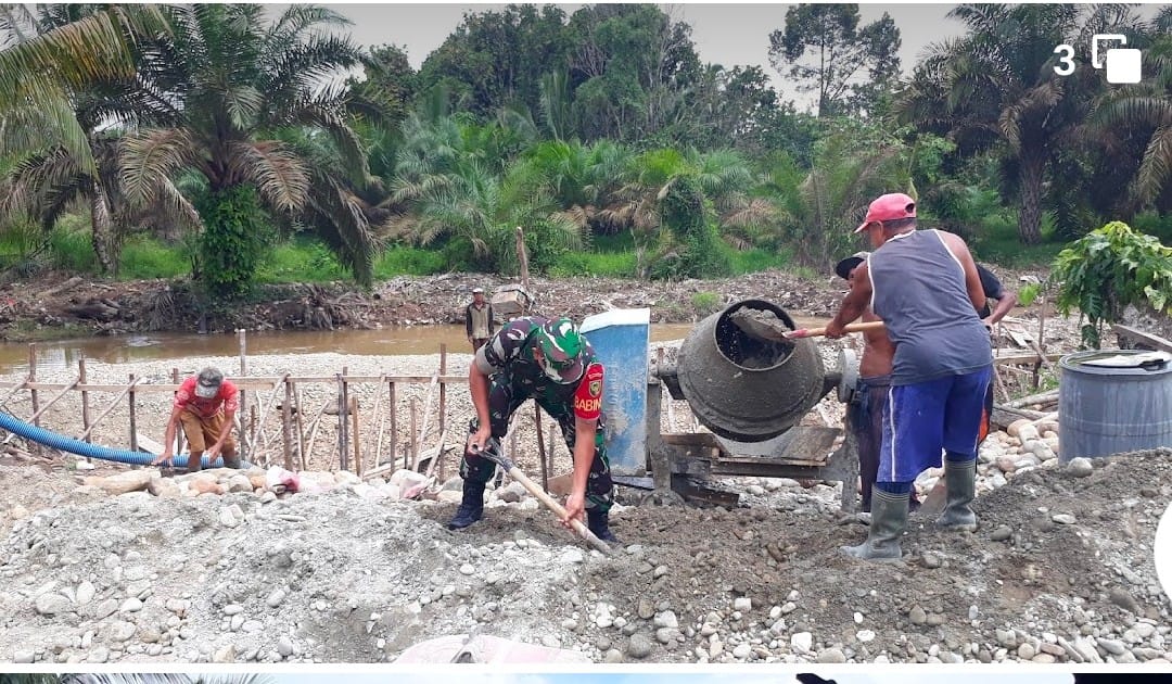 Bintara Pembina Desa (Babinsa) Koramil 406-01/Rawas Ulu, Serma Rusli, bersama masyarakat Desa Lesung Batu, Kecamatan Rawas Ulu, Kabupaten Musi Rawas Utara, melaksanakan kegiatan gotong royong .
