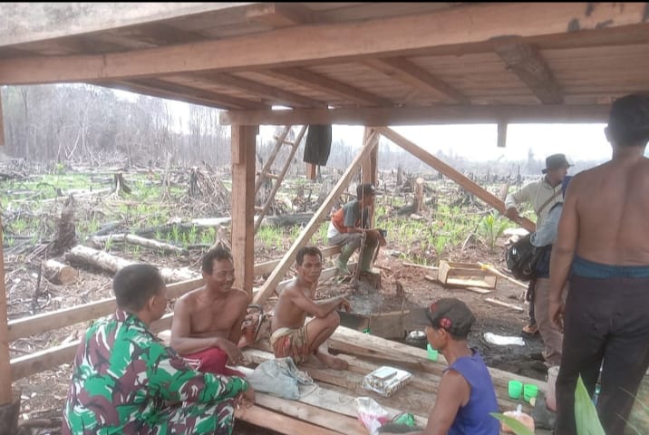 Babinsa Serka Rudiyanto mengatakan didalam pembinaan teritorial banyak hal yang dilakukan oleh Babinsa salah satunya melaksanakan komunikasi sosial bersama warga seperti yang tengah dilakukannya. Kegiatan ini bertujuan untuk menyampaikan sosialisasi dan himbauan mengenai bahaya kebakaran hutan dan lahan (karhutla).