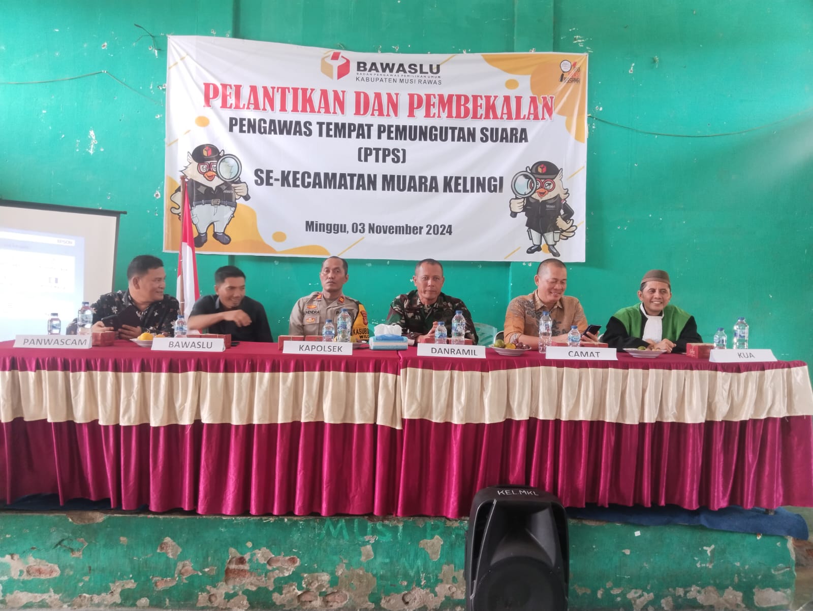 Kegiatan ini dihadiri oleh berbagai tokoh penting, termasuk Ketua Bawaslu Musi Rawas, Ibu Yeni Karina S. Pd, Camat Muara Kelingi, Bapak Abdul Rota SE, Kapolsek Muara Kelingi, Iptu Hendra SH, serta Ketua Panwascam Muara Kelingi, Pak Yuswadi, dan sejumlah anggota PTPS.