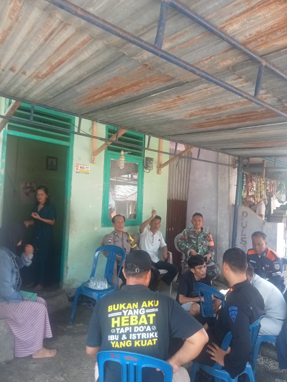 Babinsa Koramil 406-08/Lubuklinggau, Kopda Evi Chandra, melaksanakan kegiatan komunikasi sosial (komsos) di rumah warga Kelurahan Muara Enim, Kecamatan Lubuklinggau Barat I, Kota Lubuklinggau.