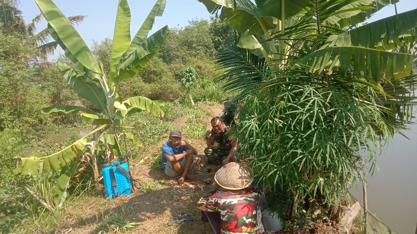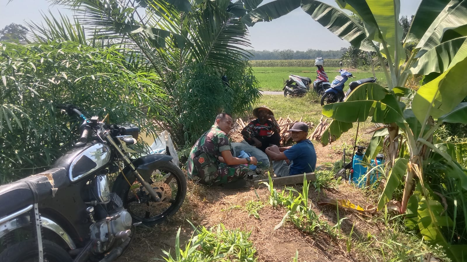 Babinsa Koramil 406-06/Tugumulyo Laksanakan Komsos dengan Warga di Areal Persawahan Mangunharjo