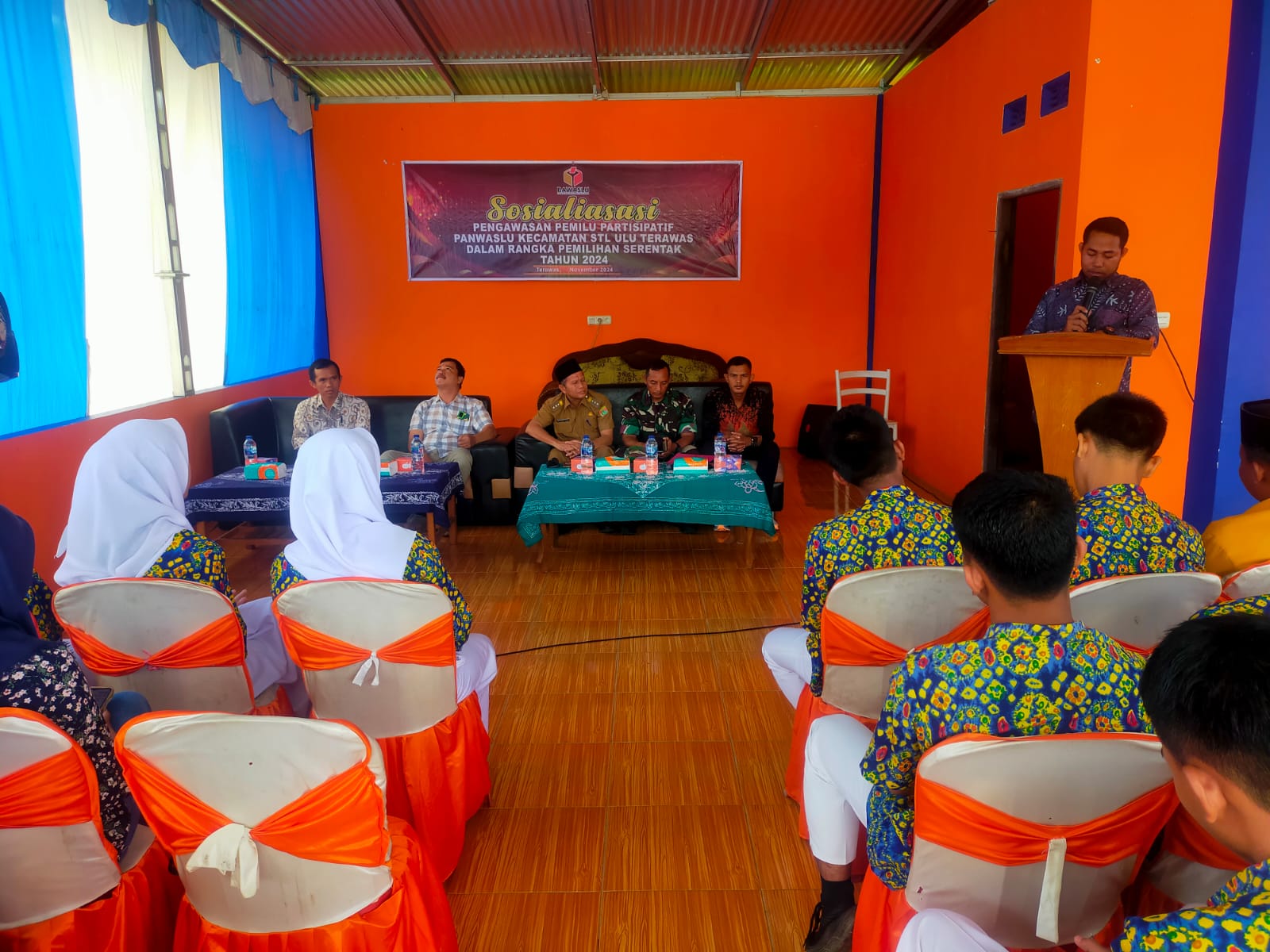 Danramil 406-09/Terawas, Lettu Inf Abdi Nusa Putra, menghadiri undangan acara sosialisasi pengawas pemilu partisipatif untuk pemilihan serentak tahun 2024 yang diselenggarakan oleh Panitia Pengawas Kecamatan (Panwascam) Stl Ulu Terawas. Acara ini berlangsung di Sekretariat Panwascam, Kelurahan Terawas, Kecamatan Stl Ulu Terawas, Kabupaten Musi Rawas.