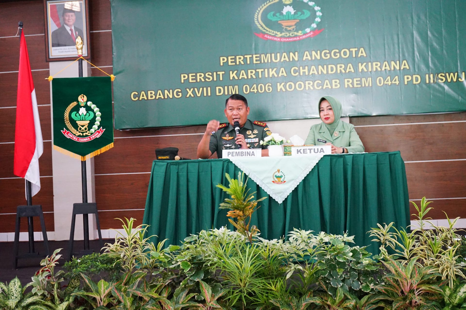 Lensa Garuda- Lubuk Linggau, Komandan Kodim 0406 Lubuk Linggau Letkol Inf Arie Prasatyo Widyo Broto S.E selaku Pembina Persit KCK Cabang XVII dan Ketua Persit KCK Cabang XVII Ny Indah Arie Prasatyo memberikan pengarahan kepada seluruh istri prajurit Kodim 0406 Lubuk Linggau dalam Pertemuan Anggota Persit Kartika Chandra Kirana Cabang XVII Dim 0406 Koorcab Rem 044 PD II /SWJ. Bertempat di Aula Pamungkas Kodim 0406 Lubuk Linggau. Jumat (15/11/2024).