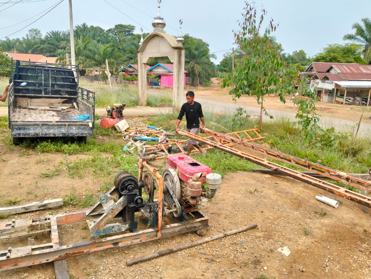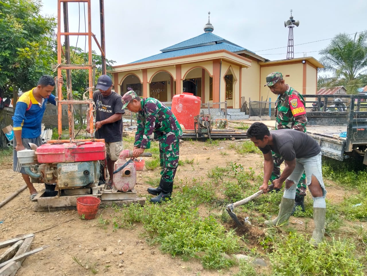 Babinsa Desa Beringin Makmur II, Koramil 02/Rawas Ilir, Pelda Endang Permana, melaksanakan kegiatan monitoring dan pendampingan pada pelaksanaan awal pembuatan sumur bor. Kegiatan ini merupakan bagian dari Program Unggulan KASAD Mabesad TNI Manunggal Air yang bertujuan untuk mendukung penyediaan sumber air bersih di seluruh wilayah Indonesia.