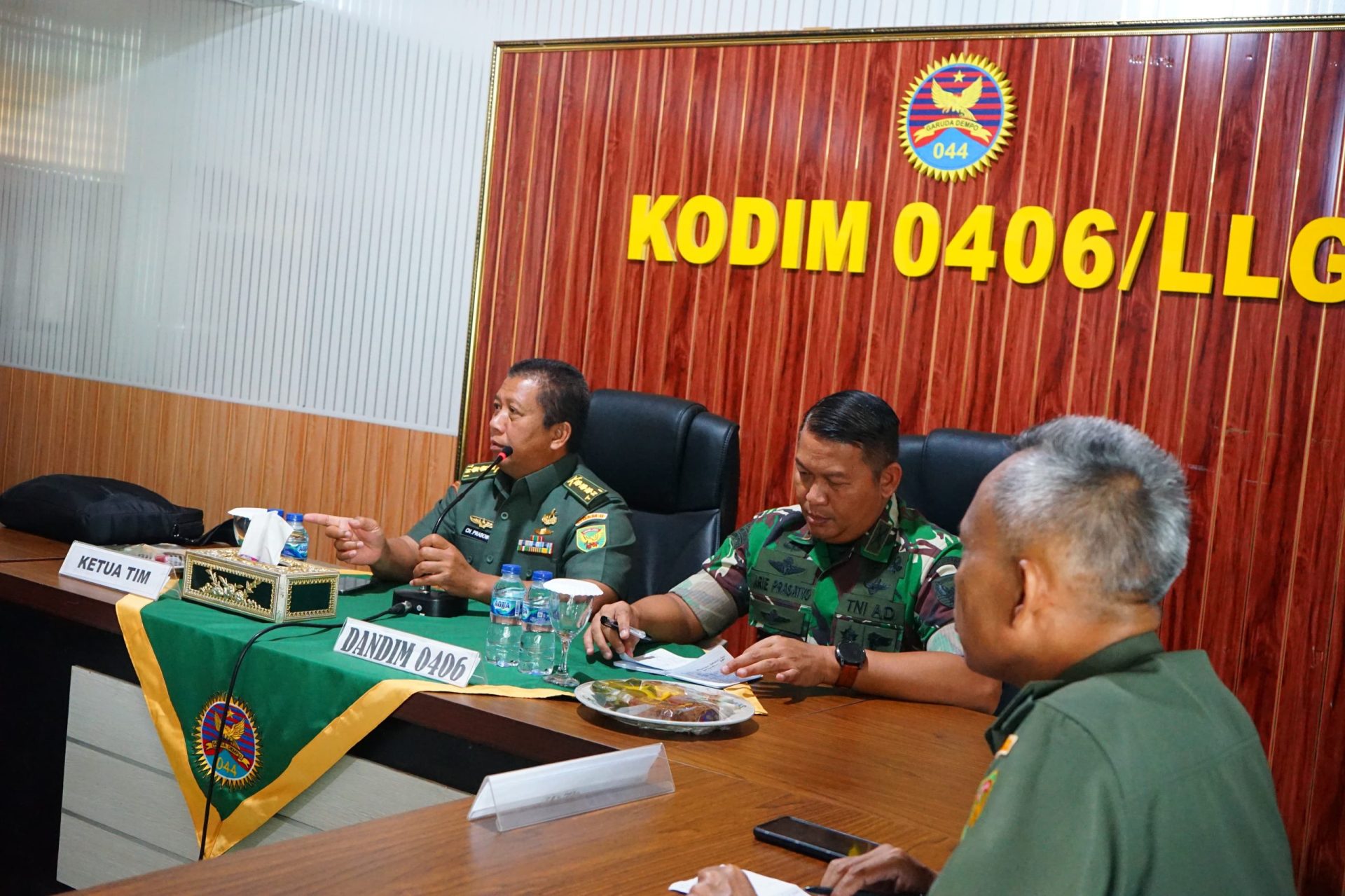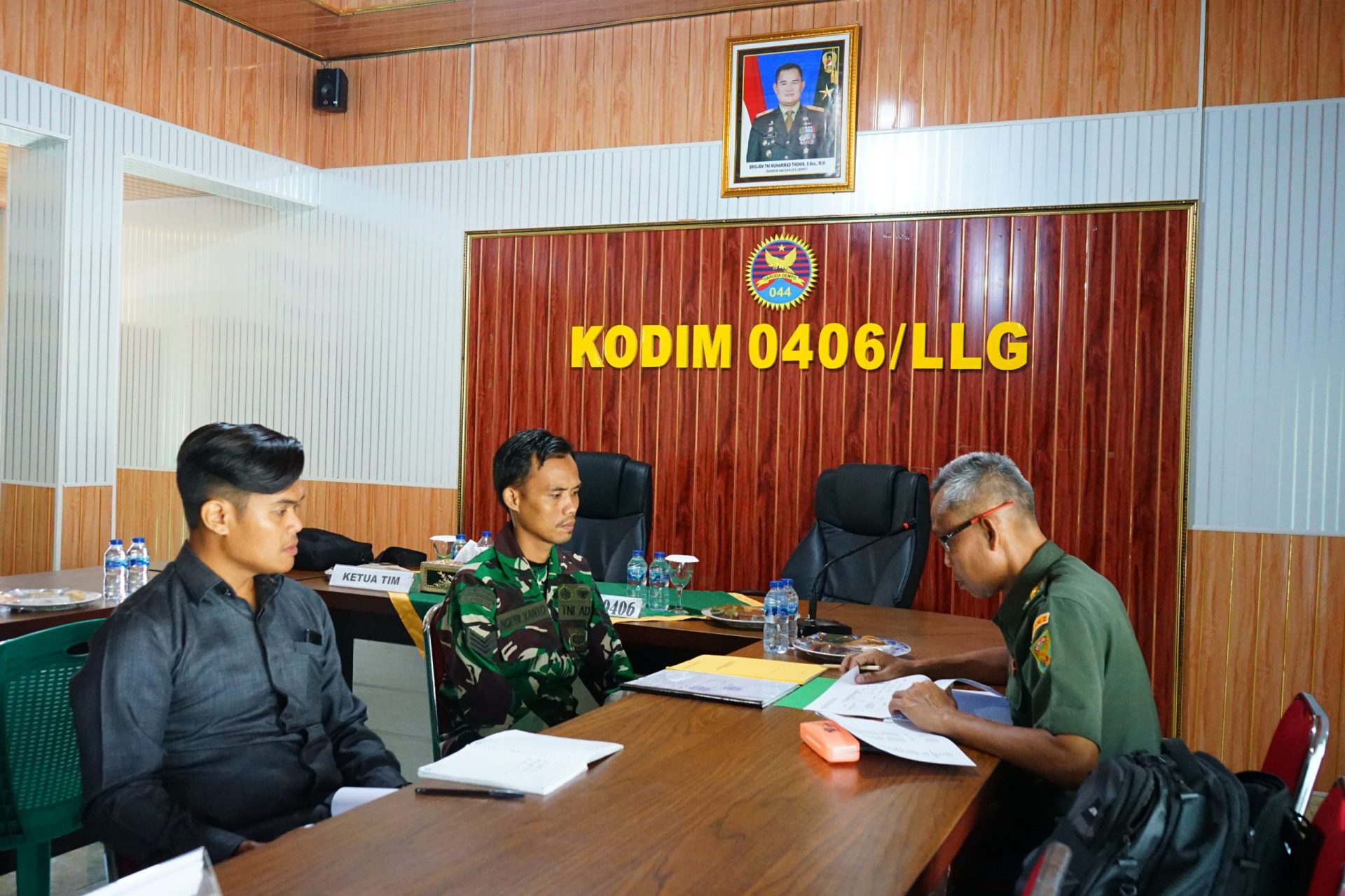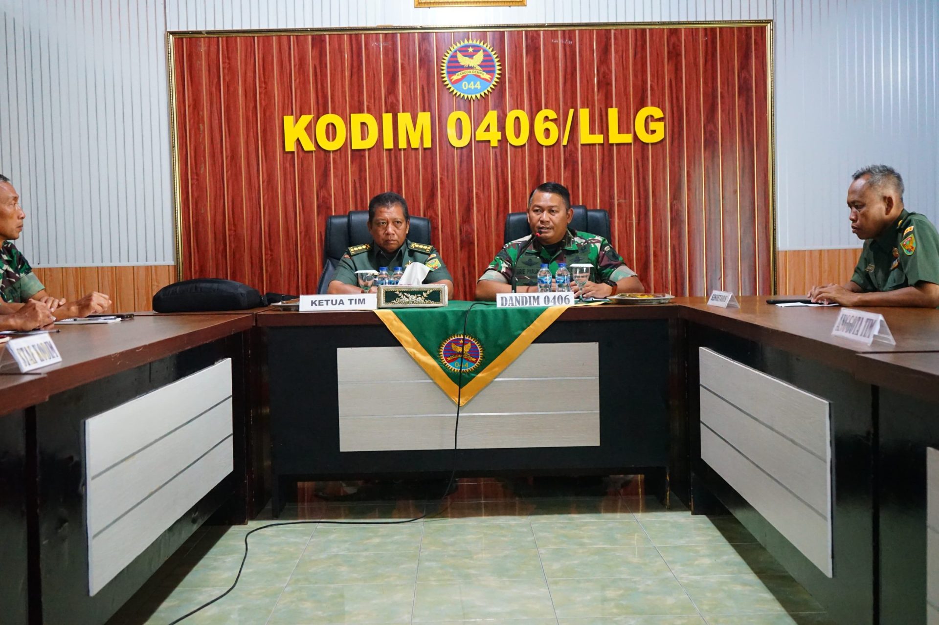 Kedatangan Tim Wasrik Itdam II/Sriwijaya disambut oleh Komandan Kodim 0406/Lubuk Linggau, Letkol Inf Arie Prasatyo Widyo Broto S.E beserta Kepala Staf Kodim, dan Perwira Staf Kodim 0406 Lubuk Linggau di Kantor Kodim 0406 Lubuk Linggau.