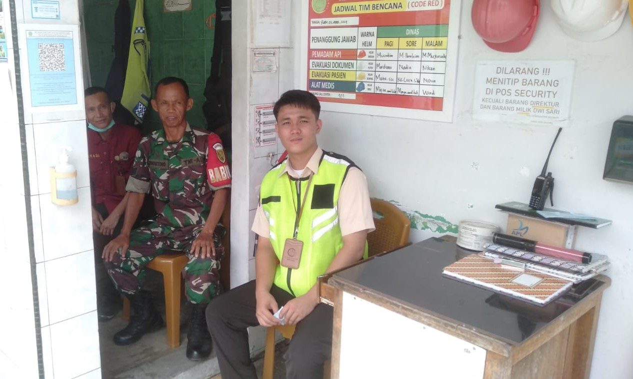Babinsa Serma Suwartono Laksanakan Kunjungan Silaturahmi dan Komunikasi Sosial dengan Security dan Petugas Parkir RSIA Dwisari Lubuk Linggau