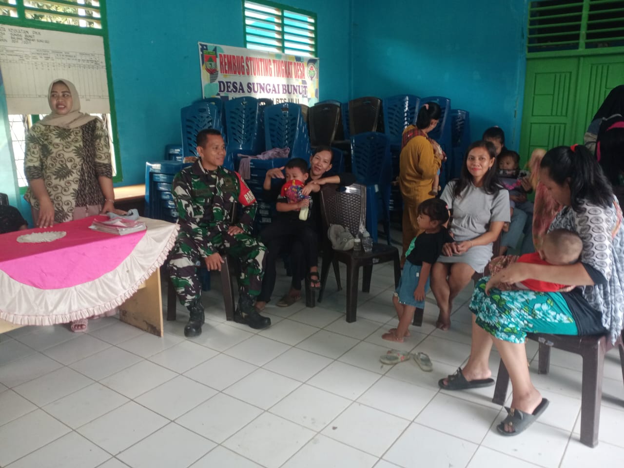 Cegah Stunting Pada Anak, Babinsa Koramil 406-05/Muara Kelingi Lakukan Pendampingan Imunisasi di Desa Sungai Bunut