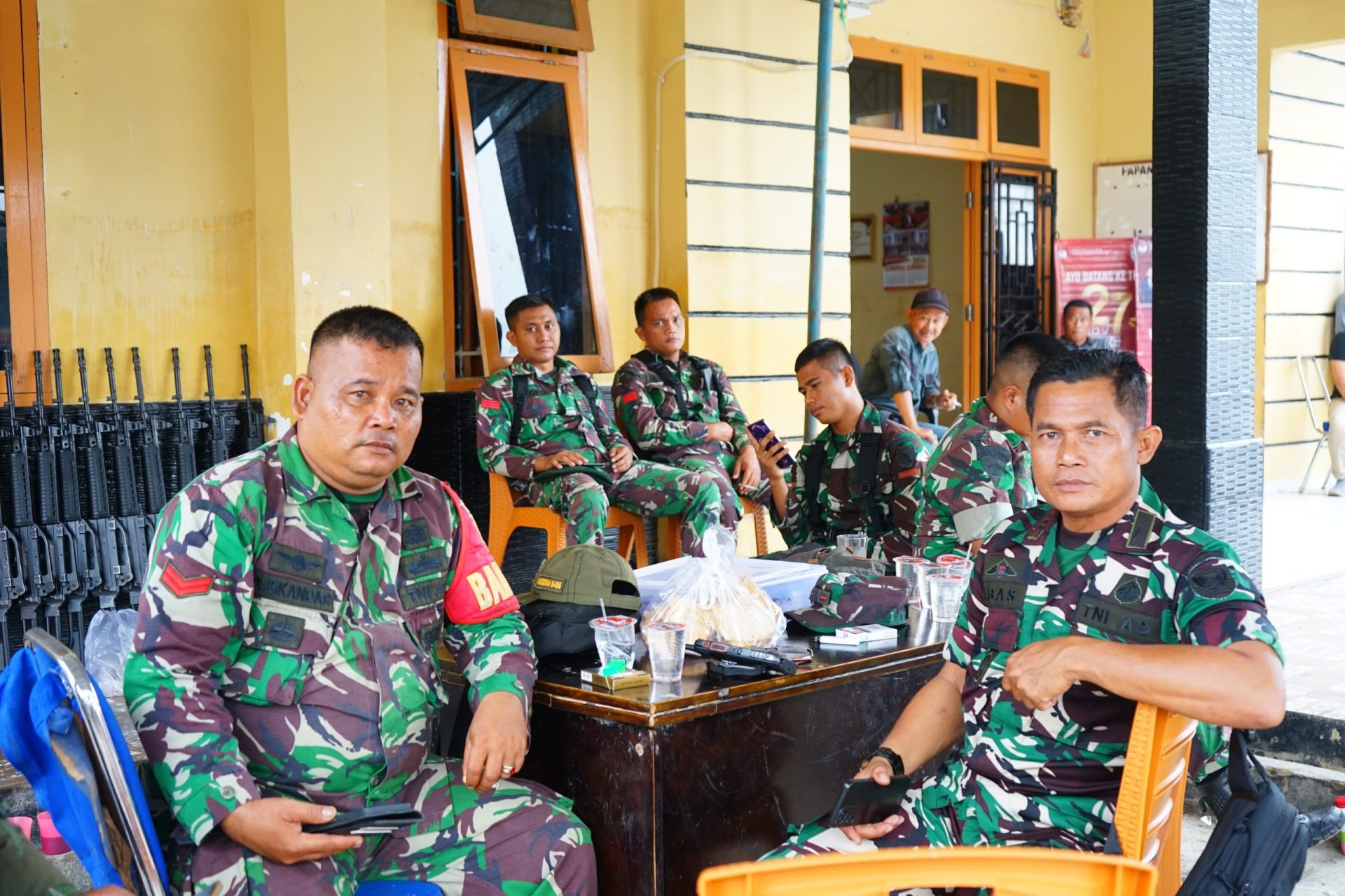 Lensa Garuda- Musi Rawas Utara, Dalam rangka memberikan pengamanan sidang pleno perhitungan suara hasil pemilihan Gubernur dan Wakil Gubernur dan Pemilihan Bupati dan Wakil Bupati Kabupaten Musi Rawas Utara Danramil 406-03/Rupit Kapten Inf Abbas Syarif Hidayat pimpin personil Babinsa, personil pengamanan BKO dari Brigif 8/GC dan Personil BKO Bataliyon Raider 142/KJ melaksanakan pengamanan pleno. Bertempat di Sekretariat PPK Kecamatan Rupit, Kabupaten Musi Rawas Utara. Jumat (29/11/2024).