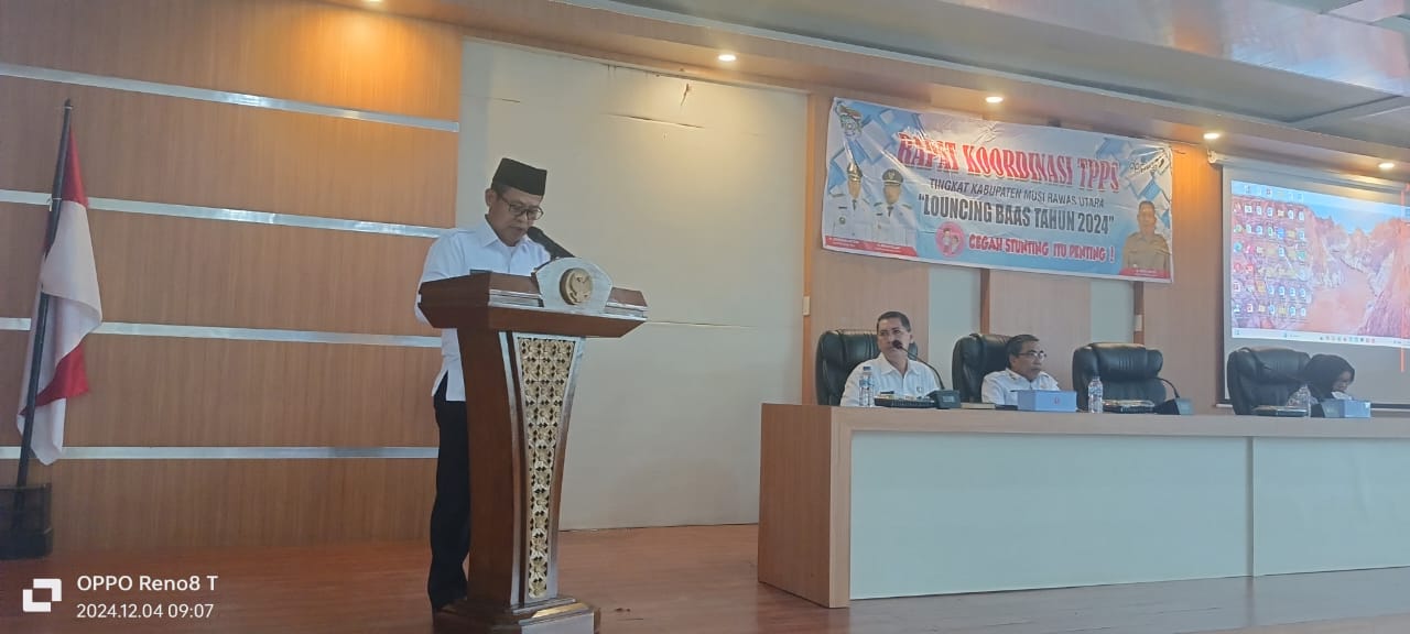 Danramil 406-01/Rawas Ulu, Kapten Inf Budi Setiawan, menghadiri acara Rapat Koordinasi Terkait Tim Percepatan Penurunan Stunting (TPPS) Tingkat Kabupaten Musi Rawas Utara sekaligus peluncuran program Bapak/Bunda Asuh Anak Stunting (BAAS) Tahun 2024. Acara ini bertujuan untuk mempercepat upaya penurunan angka stunting di wilayah Musi Rawas Utara. Rabu (04/12/2024)