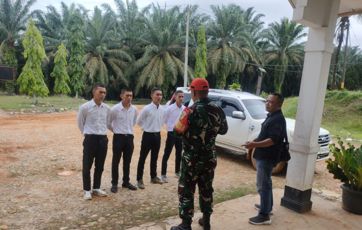 Koptu Hengki Jonson, Babinsa Koramil 406-02/Rawas Ilir, melaksanakan kegiatan komunikasi sosial (Komsos) dengan memberikan arahan kepada calon satuan pengamanan (Satpam) yang mengikuti tes di PT Batu Cemerlang Estate, Desa Pauh 1, Kecamatan Rawas Ilir, Kabupaten Musi Rawas Utara (Muratara).