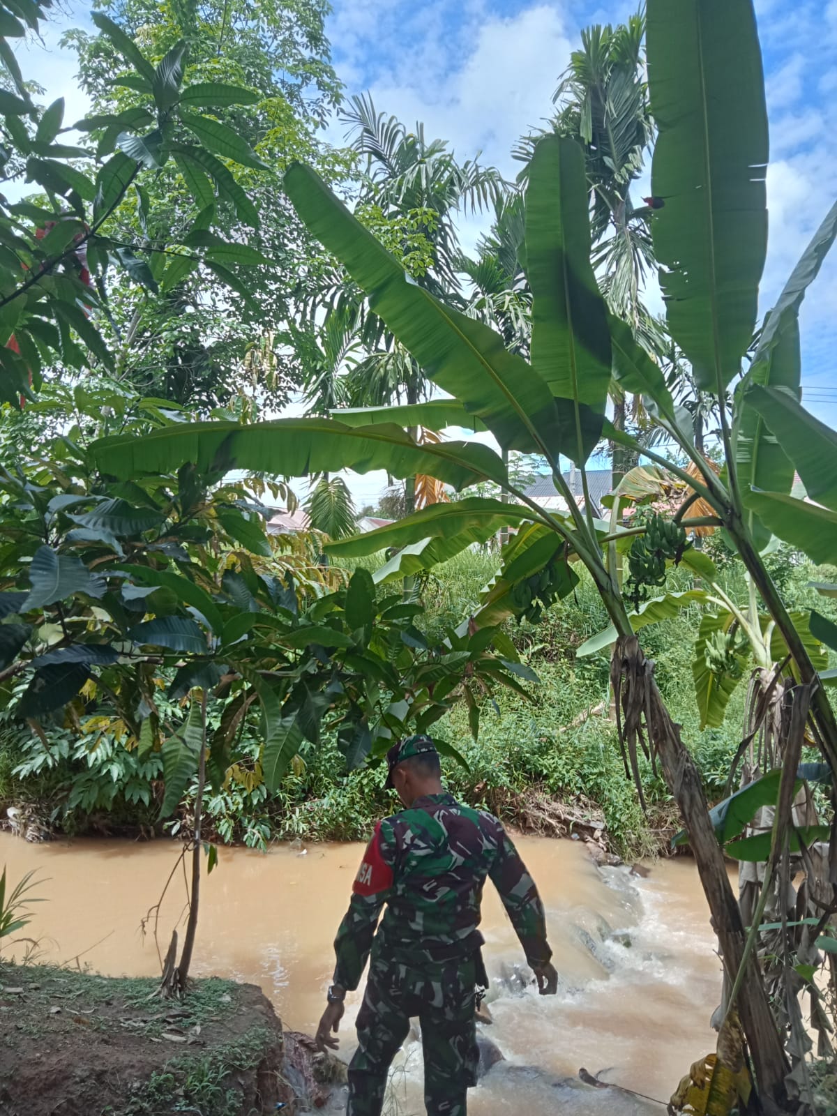Babinsa Koramil Serda Rohman Monitoring Debit Air Sungai untuk Penanggulangan Bencana Alam di Wilayah