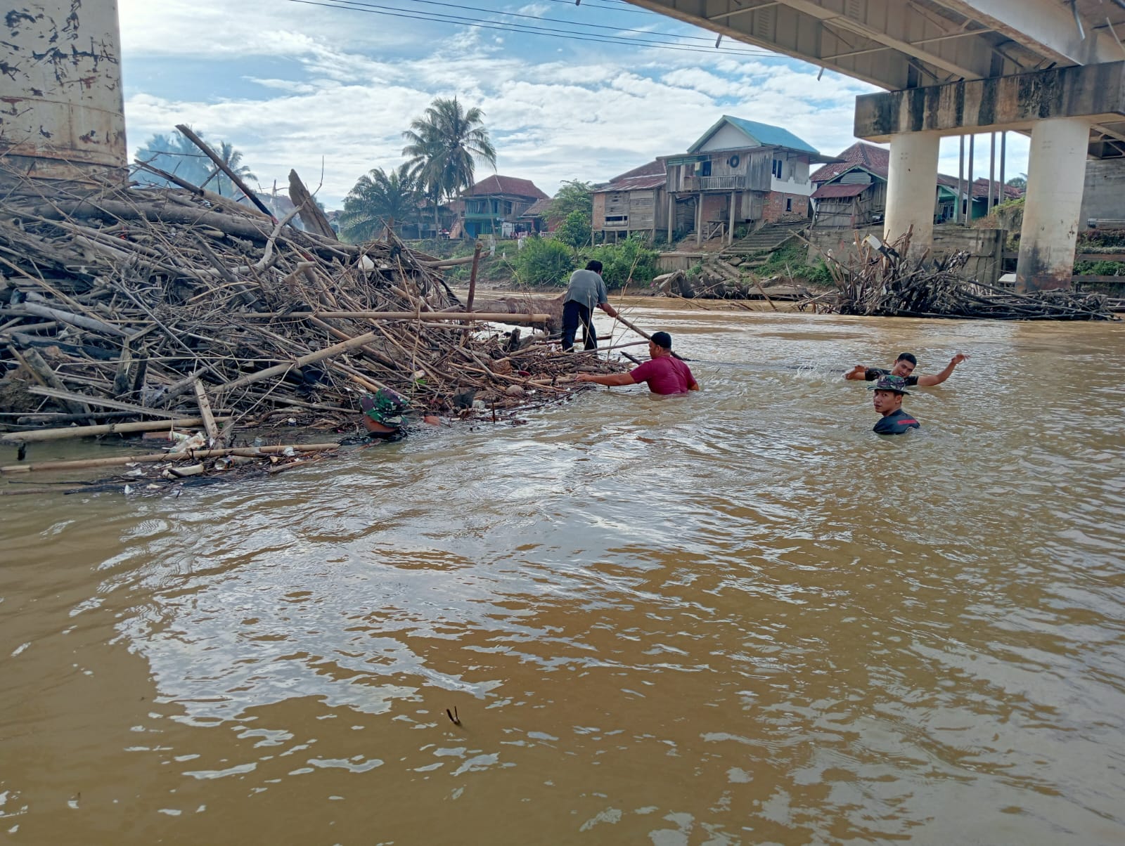 Satu unit Perahu LCR Kodim 0406 Lubuk Linggau,Gergaji mesin, Parang perorangan. Adapun sasaran pembersihan yaitu sampah kayu yang menumpuk di tiang jembatan yang dapat mengakibatkan tumpukan beban semakin besar ke tiang jembatan dan membersikan sampah yang ada di pinggiran aliran sungai.(Pendim0406/LLG).