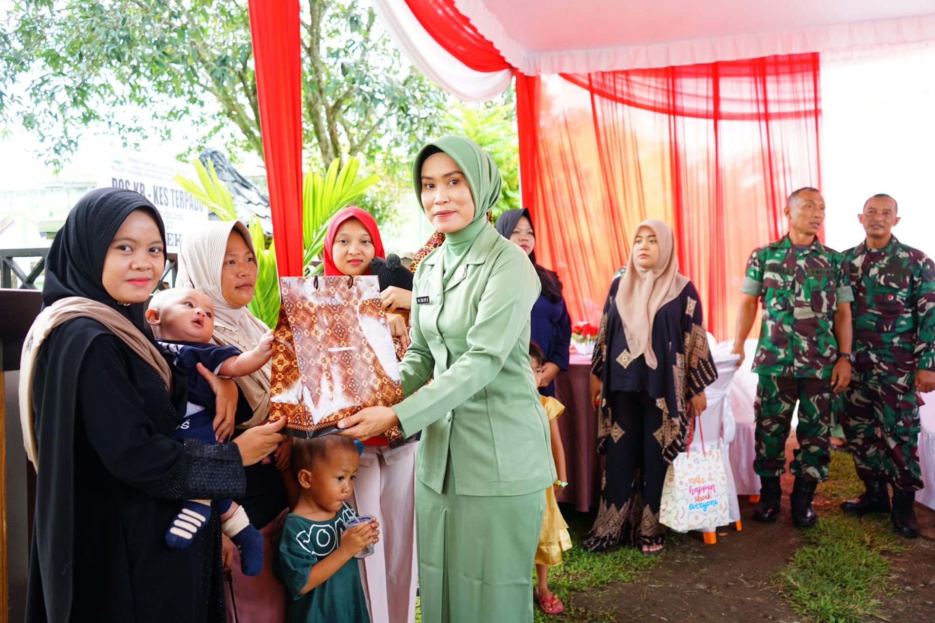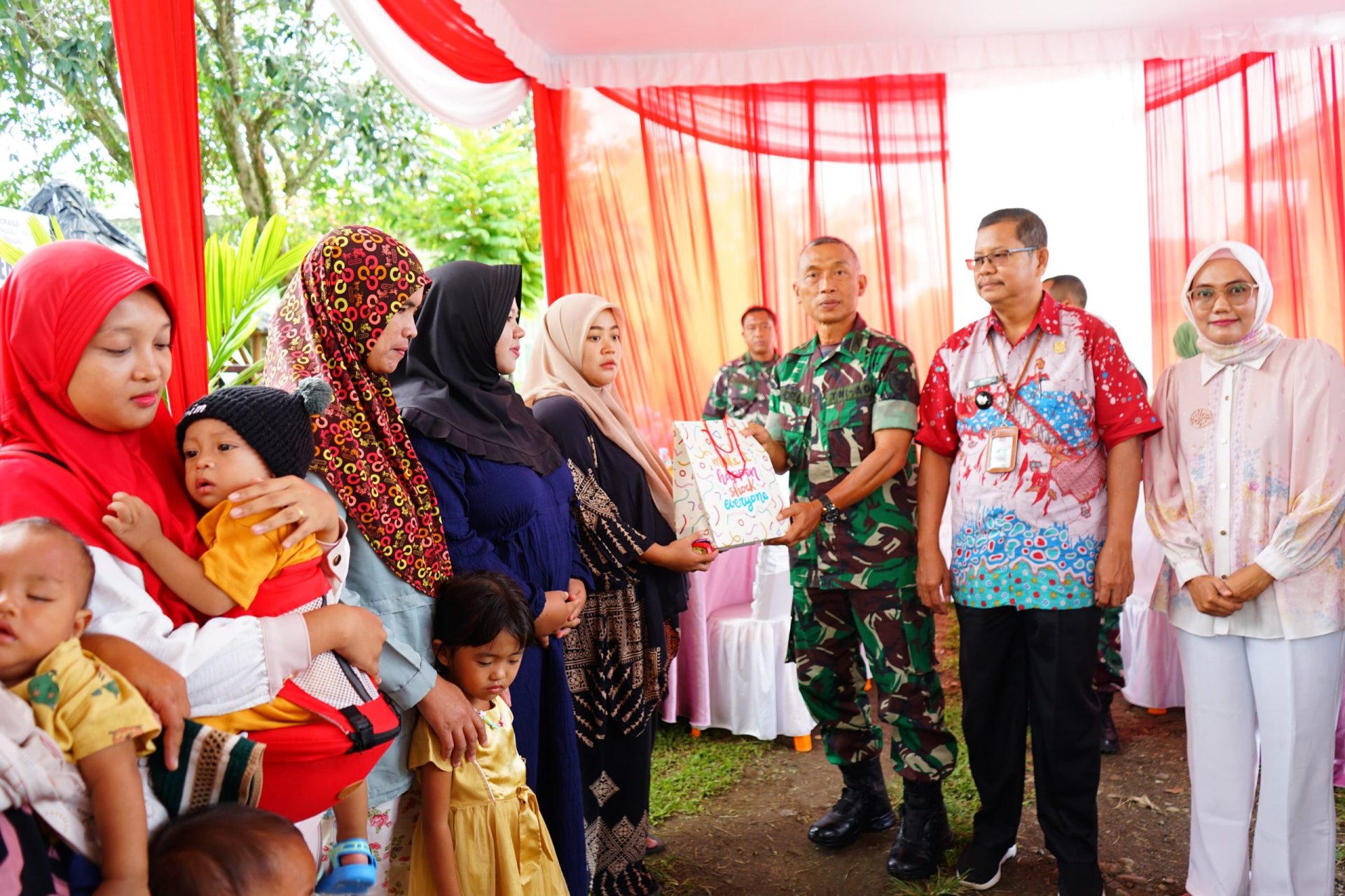 Kegiatan ini dihadiri oleh Kepala Staf Kodim Mayor Inf Khairul Ansori, Camat Ibu Selvy, Lurah Tanjung Indah Mustaredi, Kapolsek diwakili Kanit Intel Aipda Dedi Gustianto SH, Pasiter Kapten Inf Jati Priyono,Pasi Pers Kapten Inf M Assad, Danramil 406-09/Terawas Lettu Inf Abdi Nusa, Persit Bidang Sosial Ny. Epi Sugiharto dan ibu-ibu Persit, serta orang tua balita dan ibu hamil yang hadir.