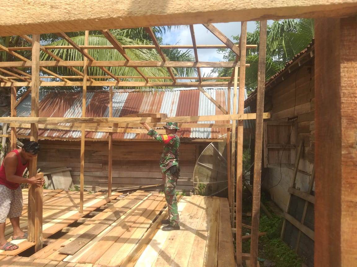 Babinsa Koramil 406-04/Muara Lakitan Bantu Warga Bangun Tempat Usaha Sederhana