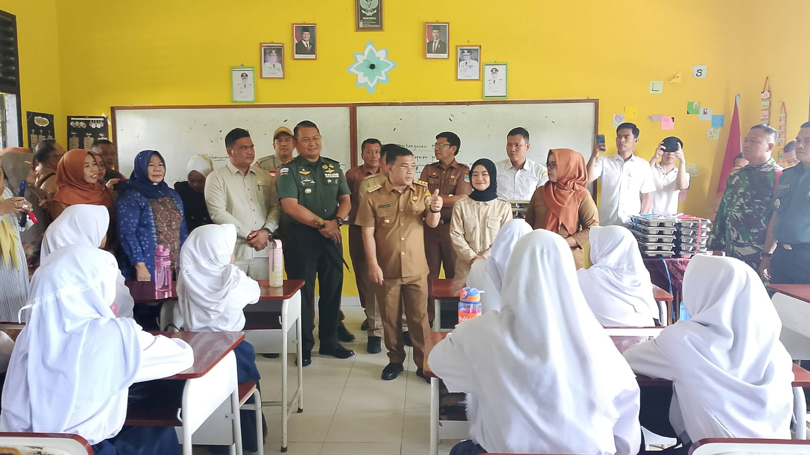 “Pada hari ini kegiatan MBG ( Makan Bergizi Gratis ) Hari ke 1 (satu) dilaksanakan di wilayah Kabupaten Muratara. Di SMP Negeri Maur Desa Maur, Kec. Rupit, Kab. Muratara sama-sama kita distribusikan kepada para siswa”. jelas Dandim Letkol Inf Arie Prasatyo Widyo Broto S.E.,M.M.