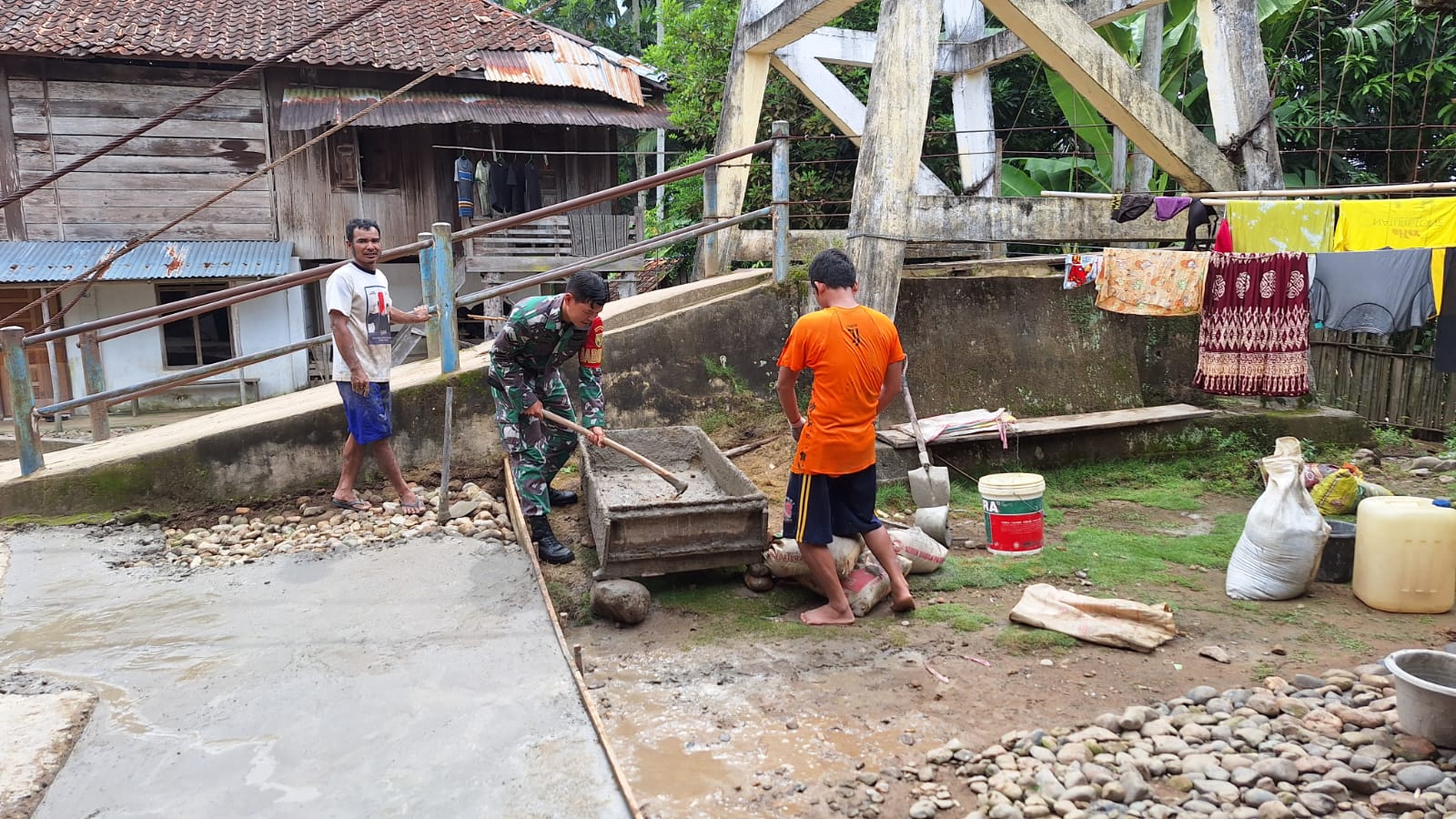 Gotong royong ini melibatkan warga desa setempat dan difokuskan pada [jenis kegiatan, misalnya pembersihan saluran air, perbaikan jalan desa, atau pembangunan fasilitas umum]. Kegiatan tersebut bertujuan untuk meningkatkan kualitas lingkungan serta memperkuat tali silaturahmi antara Babinsa dan masyarakat desa.