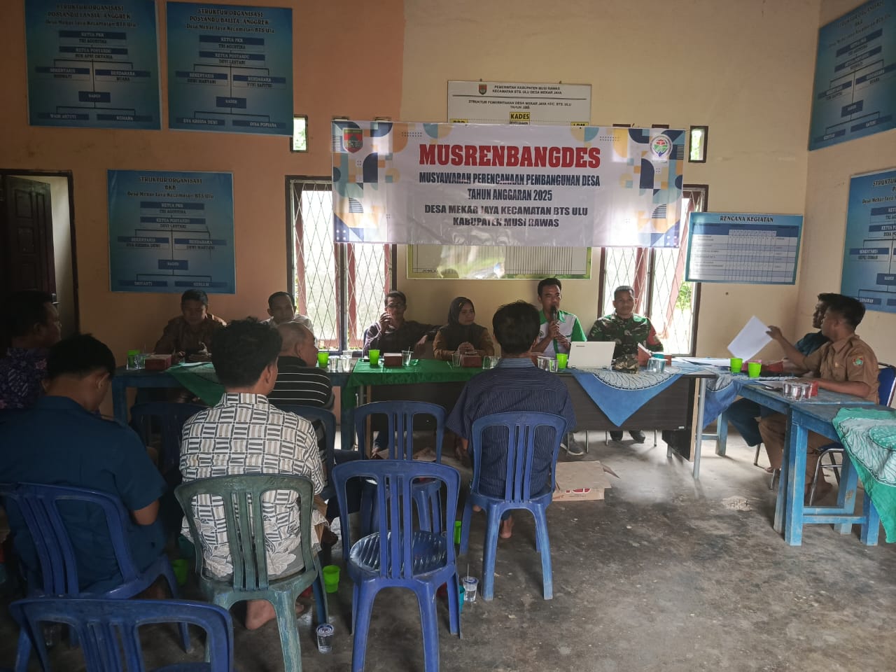 Lensa Garuda- Musi Rawas, Dalam rangka mendukung pembangunan desa dan memastikan aspirasi masyarakat terakomodir dengan baik, Babinsa Desa Mekar Jaya, Serka Dodi Saputra, yang mewakili Danramil 406-05/Muara Kelingi hadir dalam kegiatan Musyawarah Perencanaan Pembangunan Desa (MUSRENBANGDES) Desa Mekar Jaya, Bertempat di Balai Desa Mekar Jaya, Kecamatan BTS Ulu, Kabupaten Musi Rawas. Senin (21/01/2025).