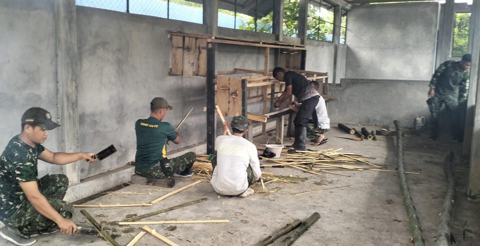Lensa Garuda- Lubuk Linggau, Dalam rangka mendukung program ketahanan pangan, Babinsa Koramil 406-10/Lubuk Linggau Timur dipimpin Serma Suwartono melaksanakan kegiatan pembuatan kandang ayam petelur di lingkungan Koramil 406-10/Lubuk Linggau Timur. Kegiatan ini bertujuan untuk meningkatkan kemandirian masyarakat dalam penyediaan sumber pangan yang bergizi dan terjangkau. Rabu (22/01/2025).