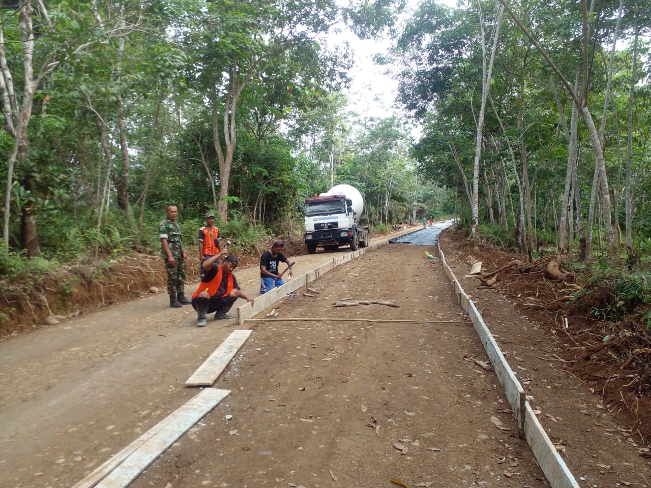 Babinsa Koramil 406-08/Lubuk Linggau Monitoring Pengecoran Jalan di Wilayah Binaan