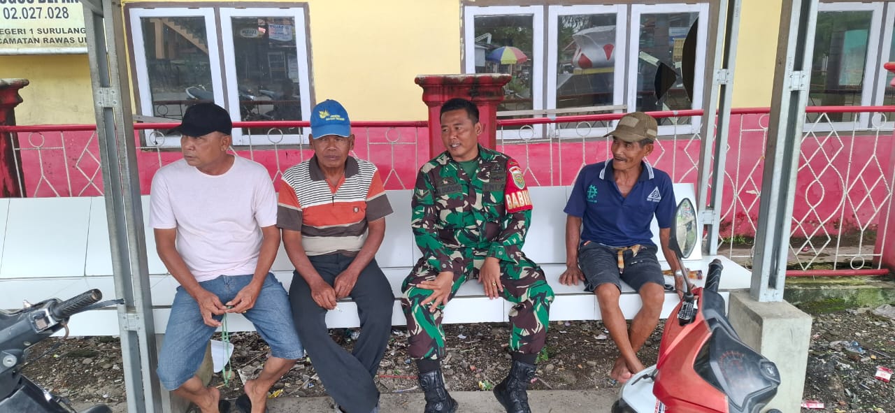 Babinsa Koramil 406-01/Rawas Ulu, Serda Niki Sudoyo, kembali menunjukkan komitmennya dalam mendukung pembangunan wilayah dengan melaksanakan kegiatan komunikasi sosial (Komsos) di Kelurahan Pasar Surulangun, Kecamatan Rawas Ulu, Kabupaten Musi Rawas Utara.